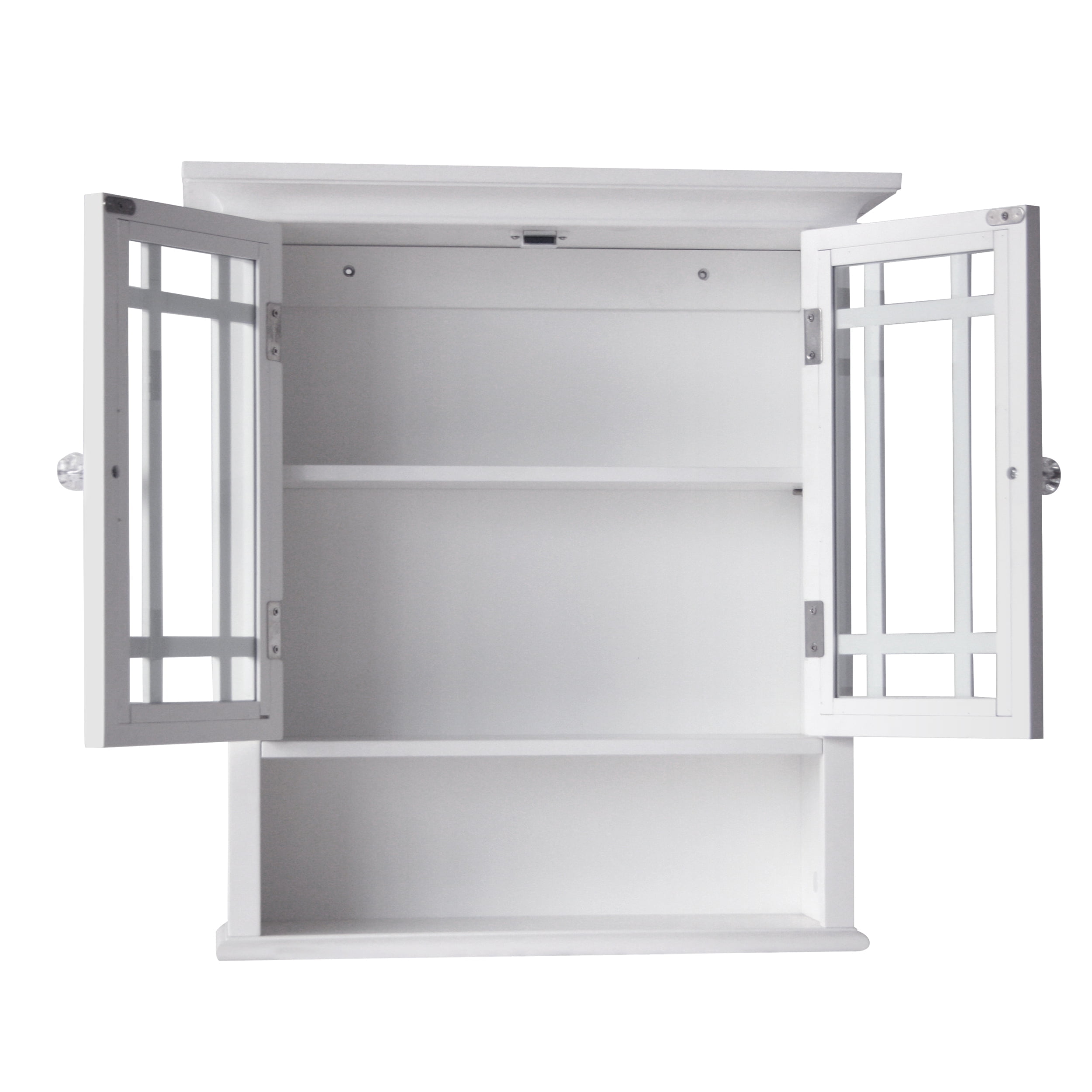 STYLISH CABINET: Features a white finish with 2 glass doors decorated with grid molding and clear knobs for a beautiful addition to your space ADJUSTABLE STORAGE: Includes an adjustable interior shelf to help reduce clutter and keep your home tidy DURABLE DESIGN: Constructed from durable engineered wood and tempered glass to provide long-lasting use SIMPLE CONSTRUCTION: Easy, step-by-step instructions and all of the hardware needed are included for quick assembly EFFICIENT SIZE: Measures 22.01″ L x 7.01″ W x 24.02″ H to provide removable storage without taking up too much space in your living area or bathroom