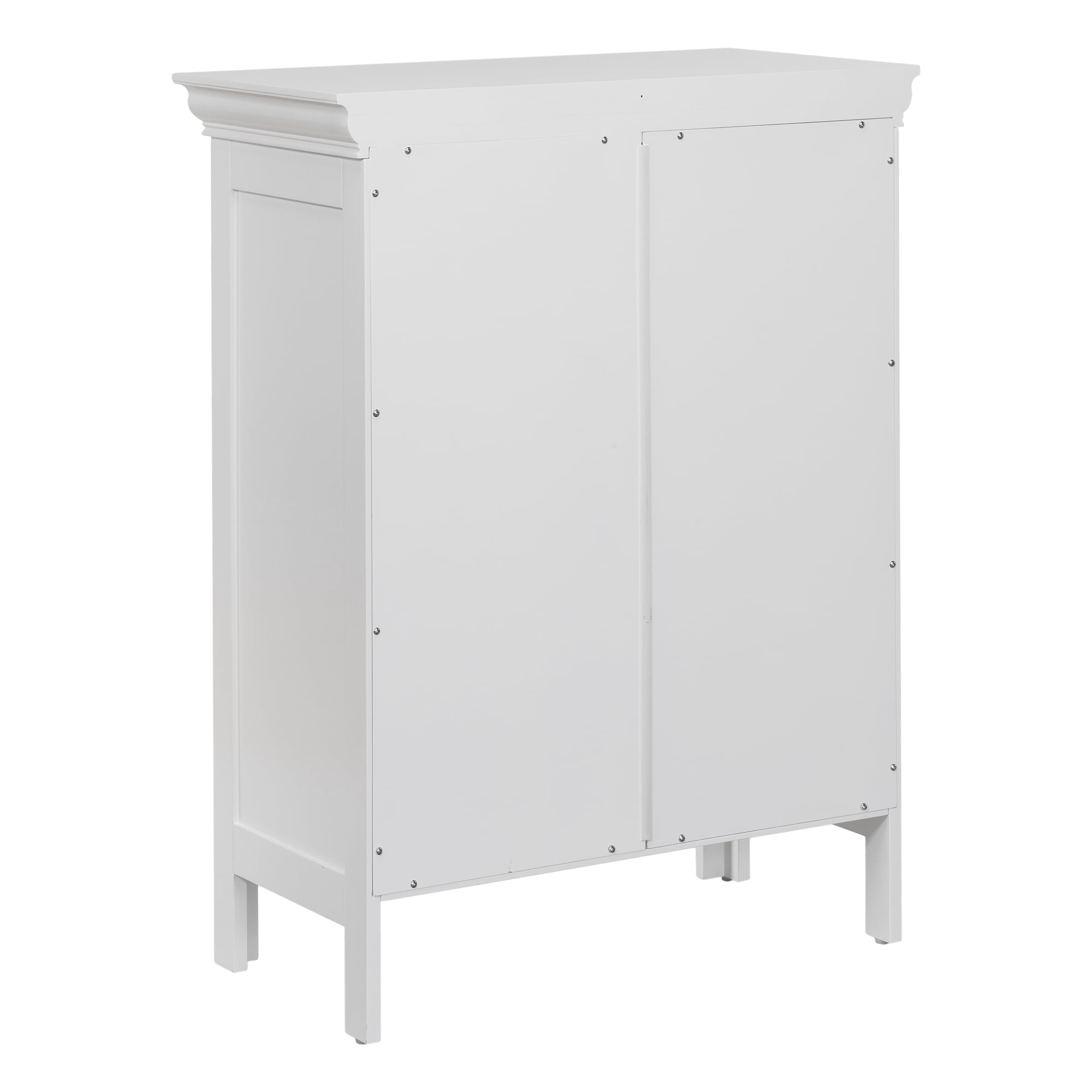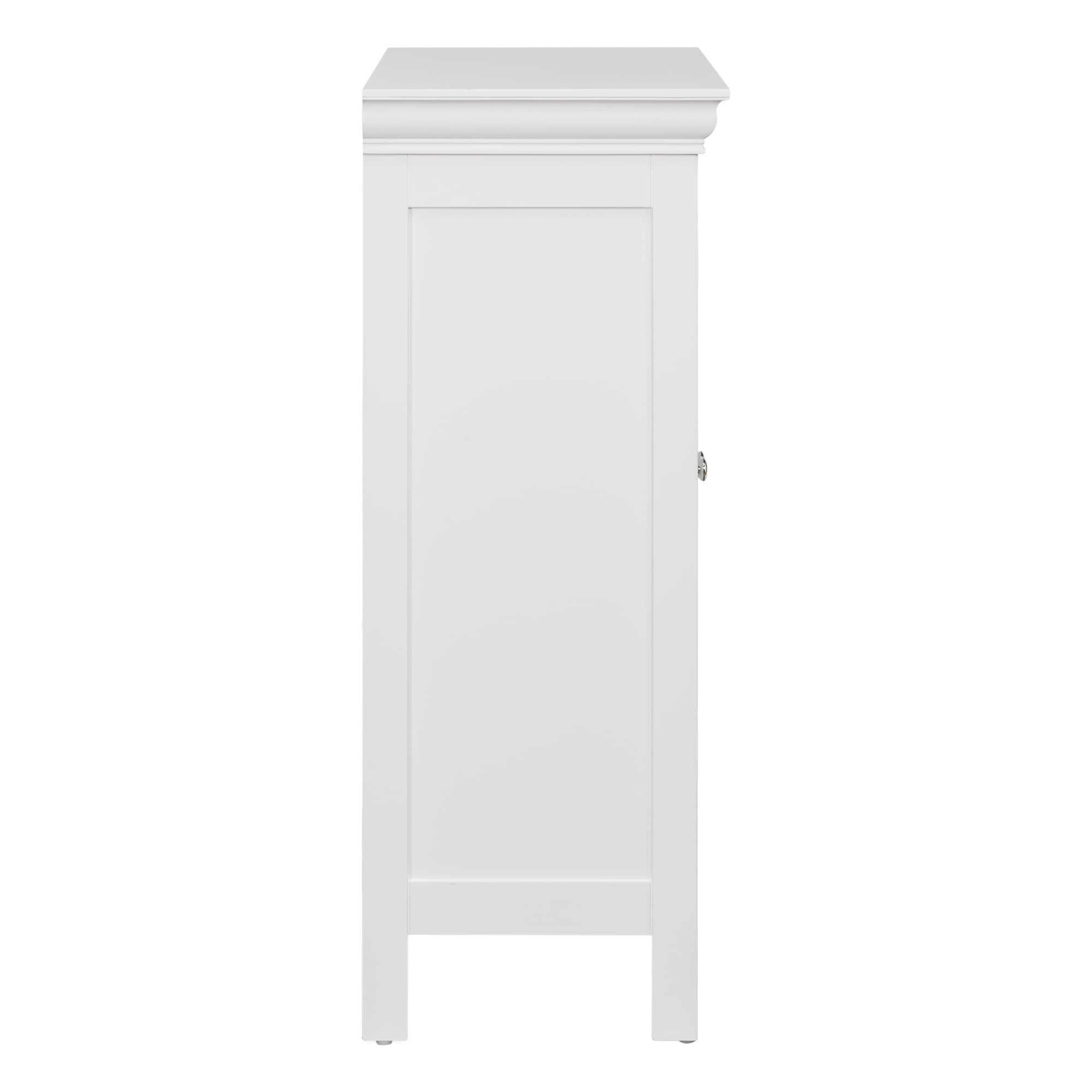 Upgrade your home storage while adding modern style with the Teamson Home Stratford Wooden Floor Cabinet with 2 Shelves. This decorative cabinet features a sophisticated white finish with chrome-finished hardware, clear door knobs, and a minimalist silhouette for a beautiful addition to your space. The 2 included adjustable interior shelves make this cabinet a functional solution to your storage needs. Constructed from durable engineered wood, this storage unit is built to provide you with long-lasting organization. Easy, step-by-step instructions and all of the hardware needed for installation are included for quick assembly. Purchase this stylish floor cabinet alone or with other items from the Stratford collection for a cohesive, updated look. The Teamson Home Stratford Wooden Floor Cabinet with 2 Shelves measures 15″ x 34″ x 10″ to provide accessible storage without taking up too much space in your living area or bathroom.