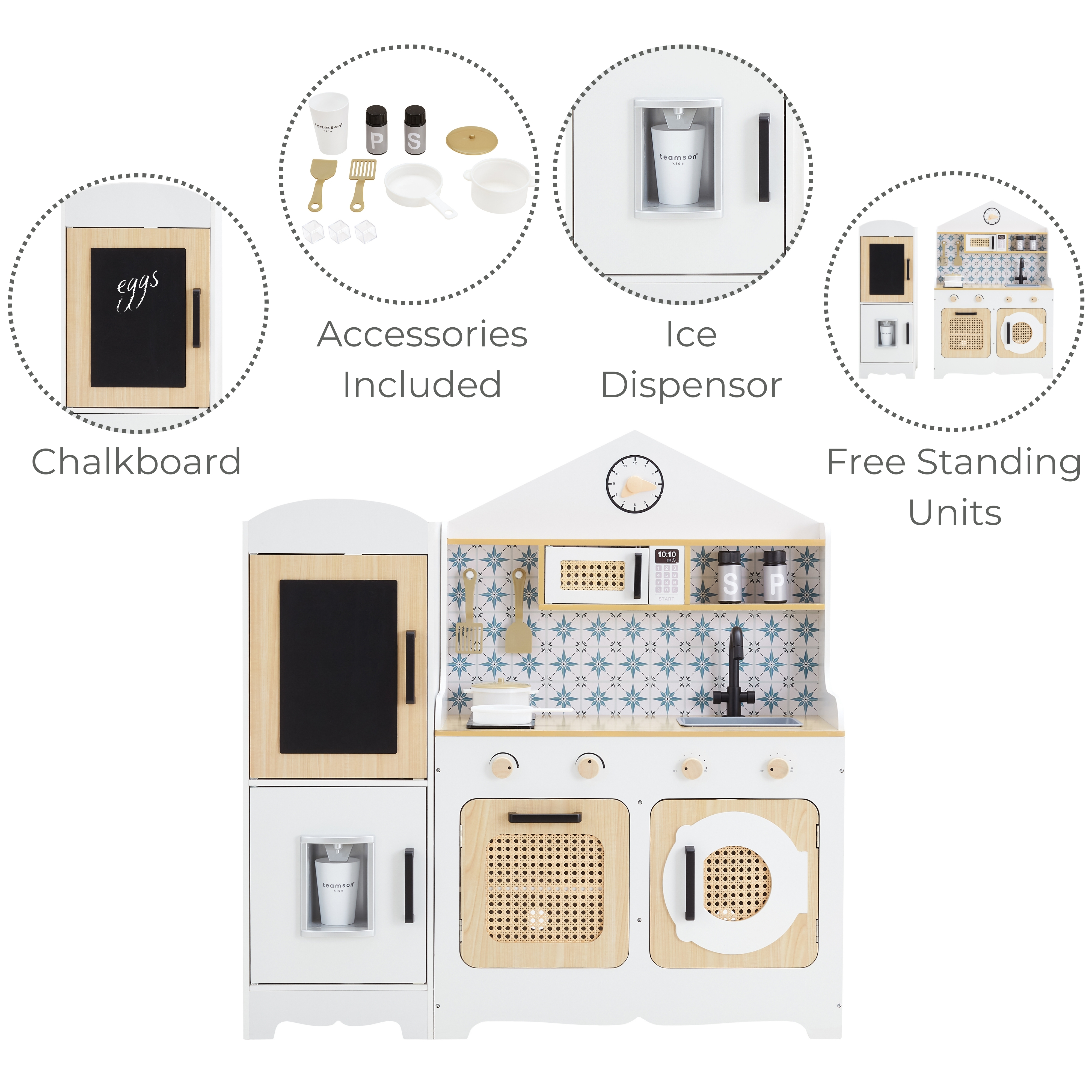 Teamson Kids Little Chef Morocco Wooden Play Kitchen & 11 Accessories with Oven, Microwave, Ice Dispenser Chalkboard on Refrigerator