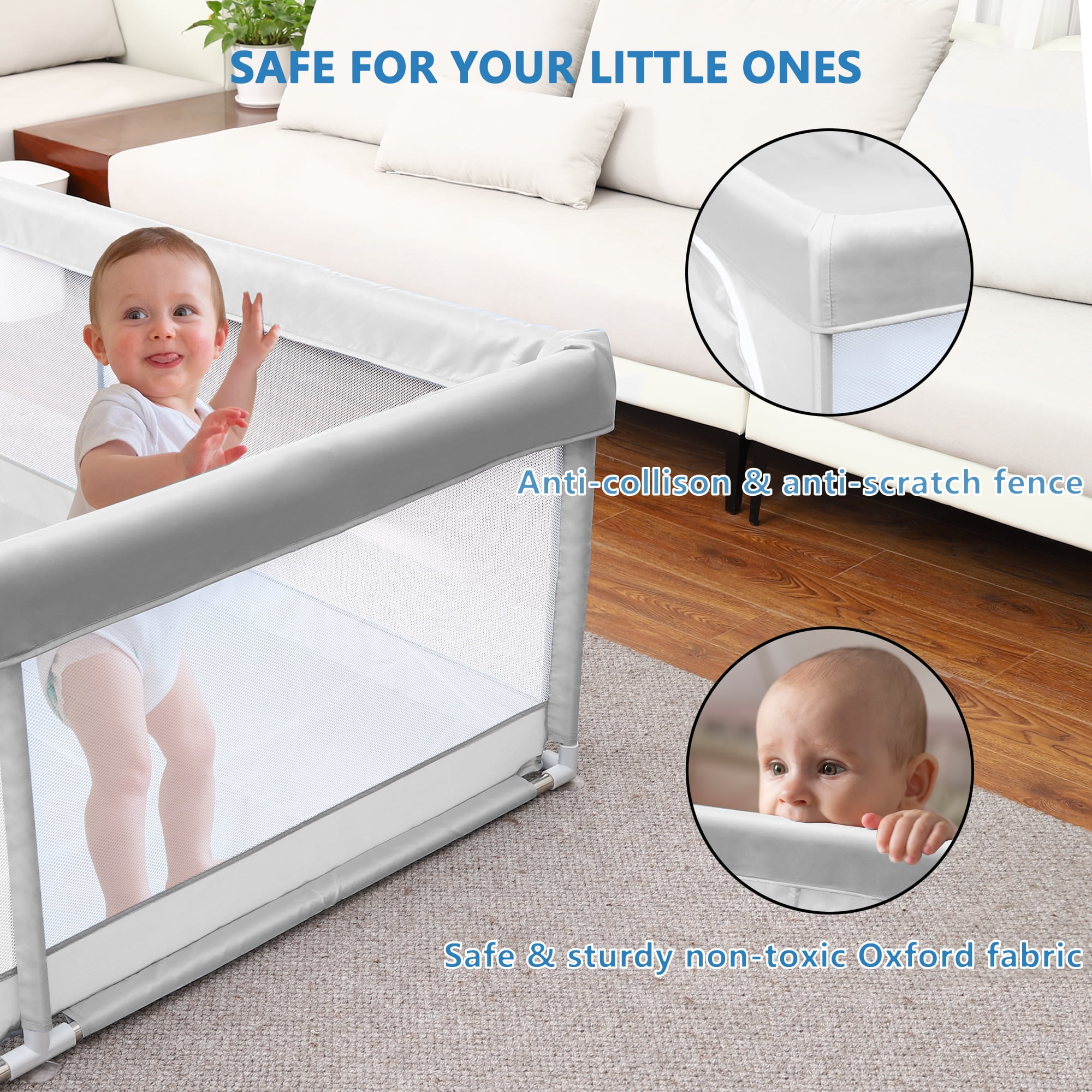 TEAYINGDE Baby Playpen Large Play Yard Fence for Toddlers,79″x79″ Gray