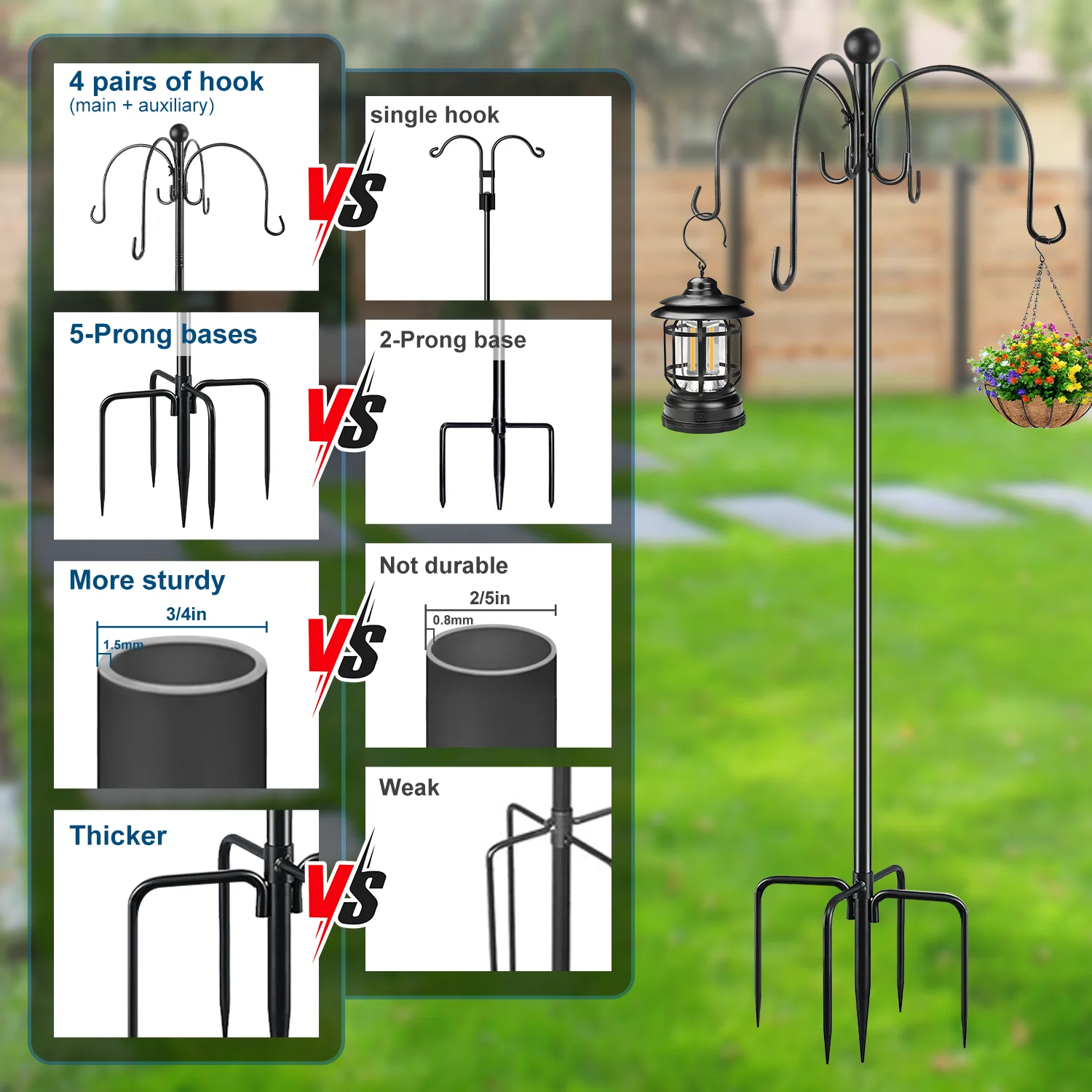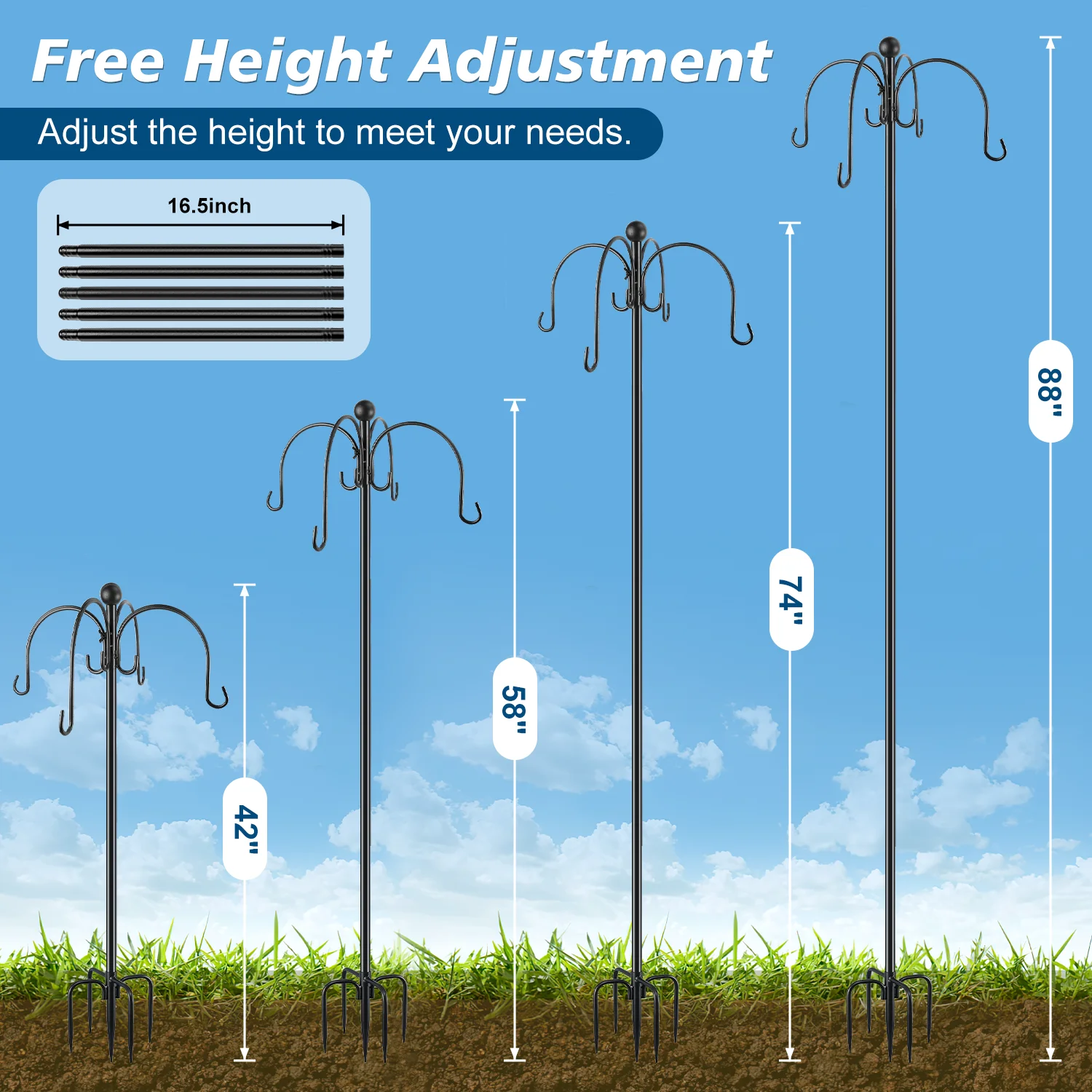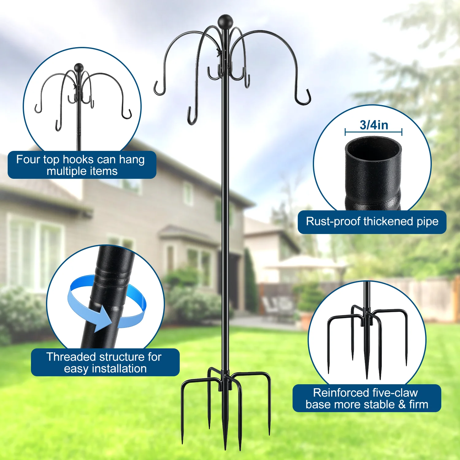 Teblint 88″ Heavy Duty Shepherds Hooks for Outdoor, 4-Hook Adjustable Bird Feeder Pole with Reinforced 5-Prong Base, Garden Hanger Stand for Bird Feeders, Hanging Plants, Solar Lights & Lanterns