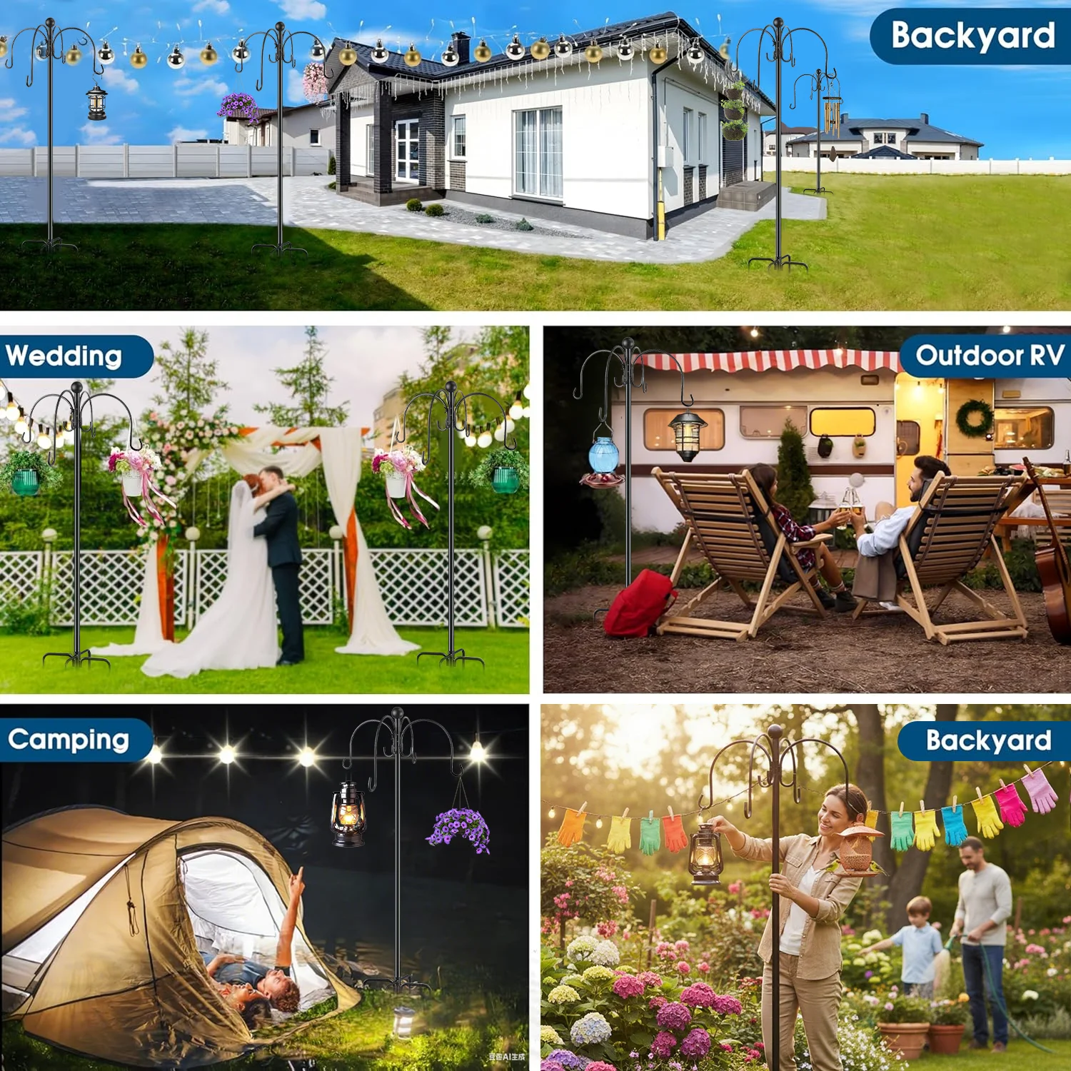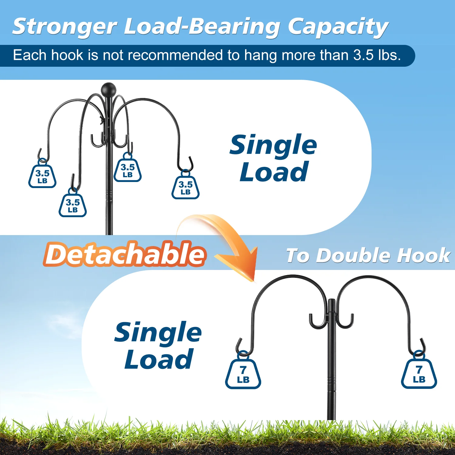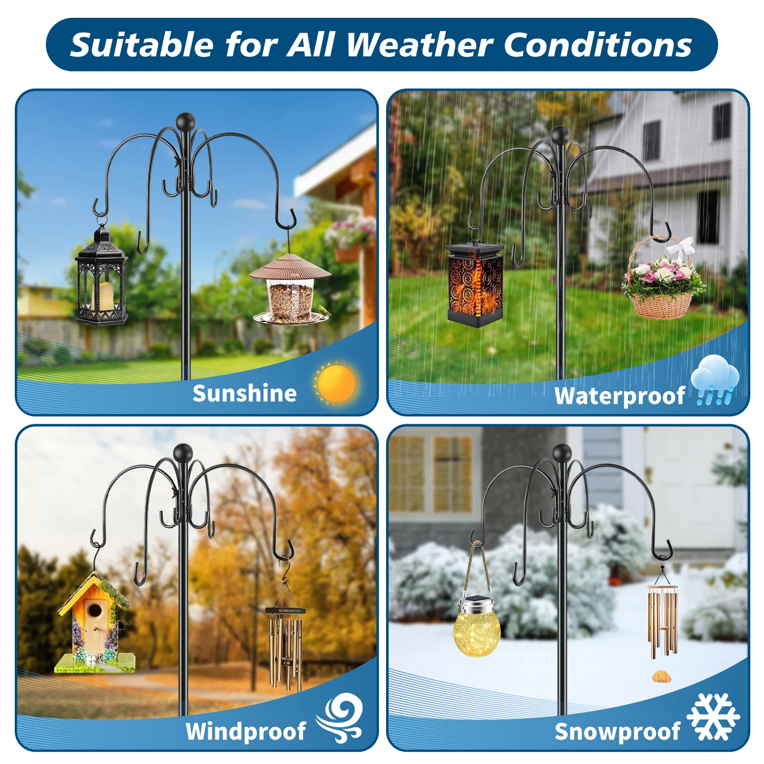 Teblint 88″ Heavy Duty Shepherds Hooks for Outdoor, 4-Hook Adjustable Bird Feeder Pole with Reinforced 5-Prong Base, Garden Hanger Stand for Bird Feeders, Hanging Plants, Solar Lights & Lanterns