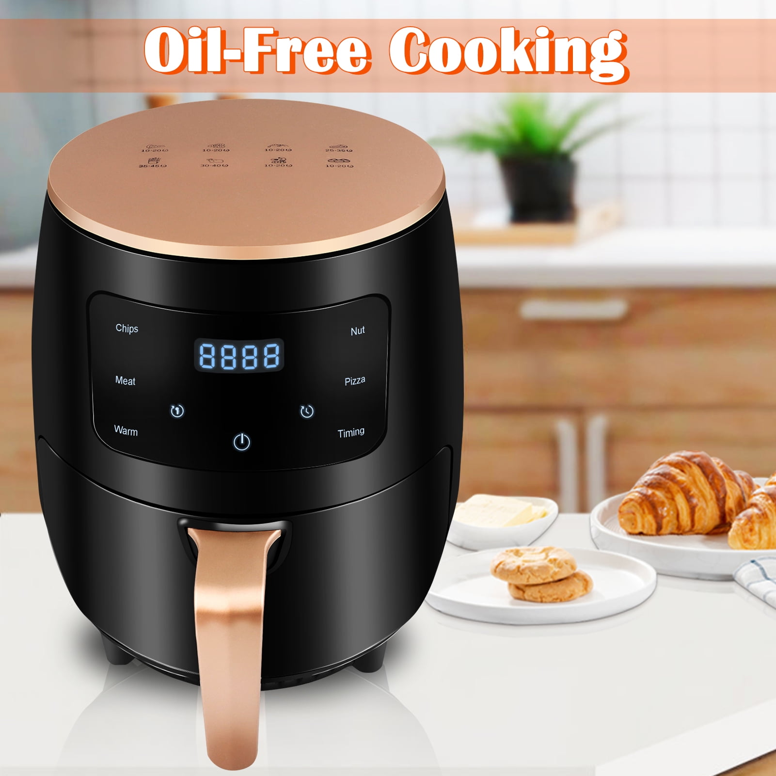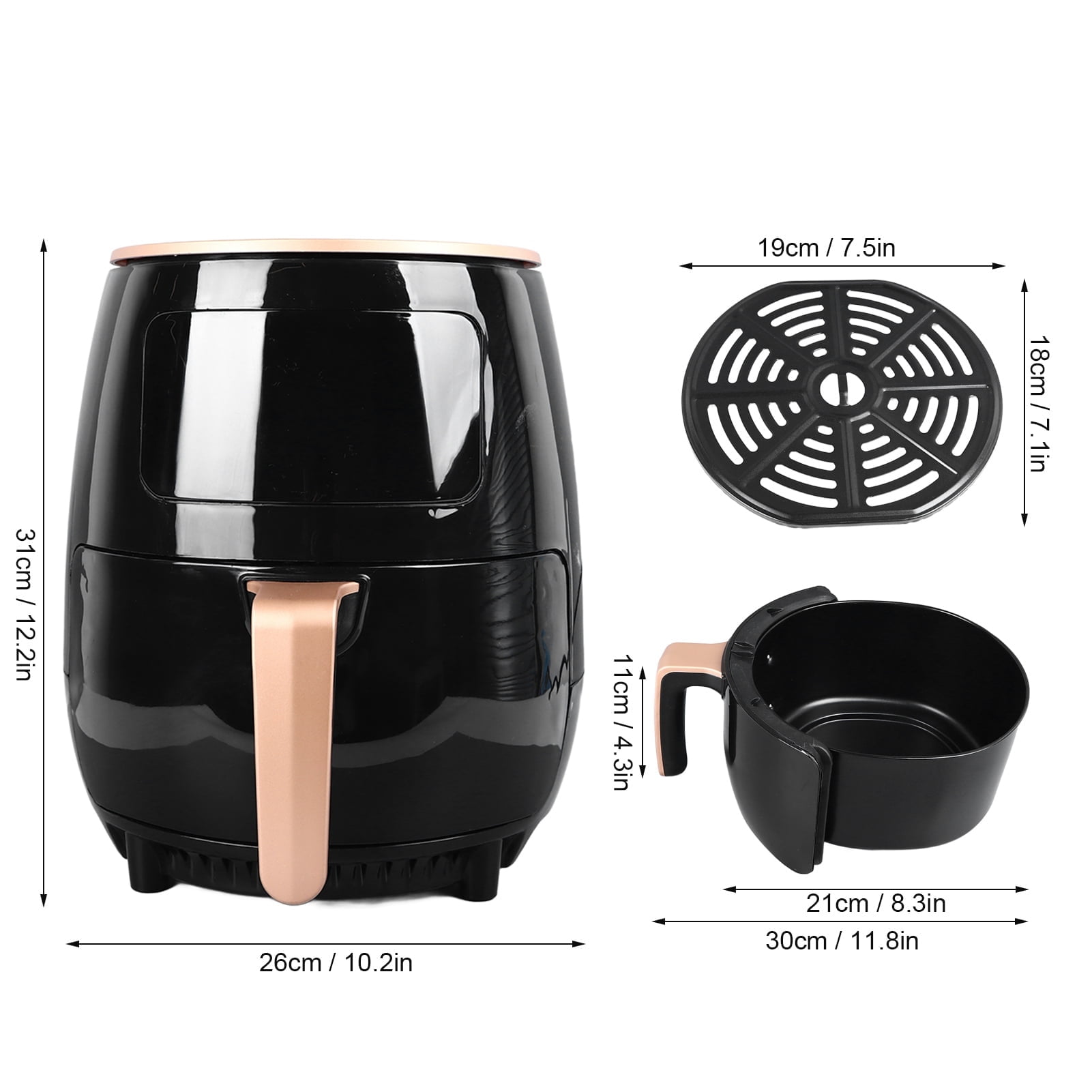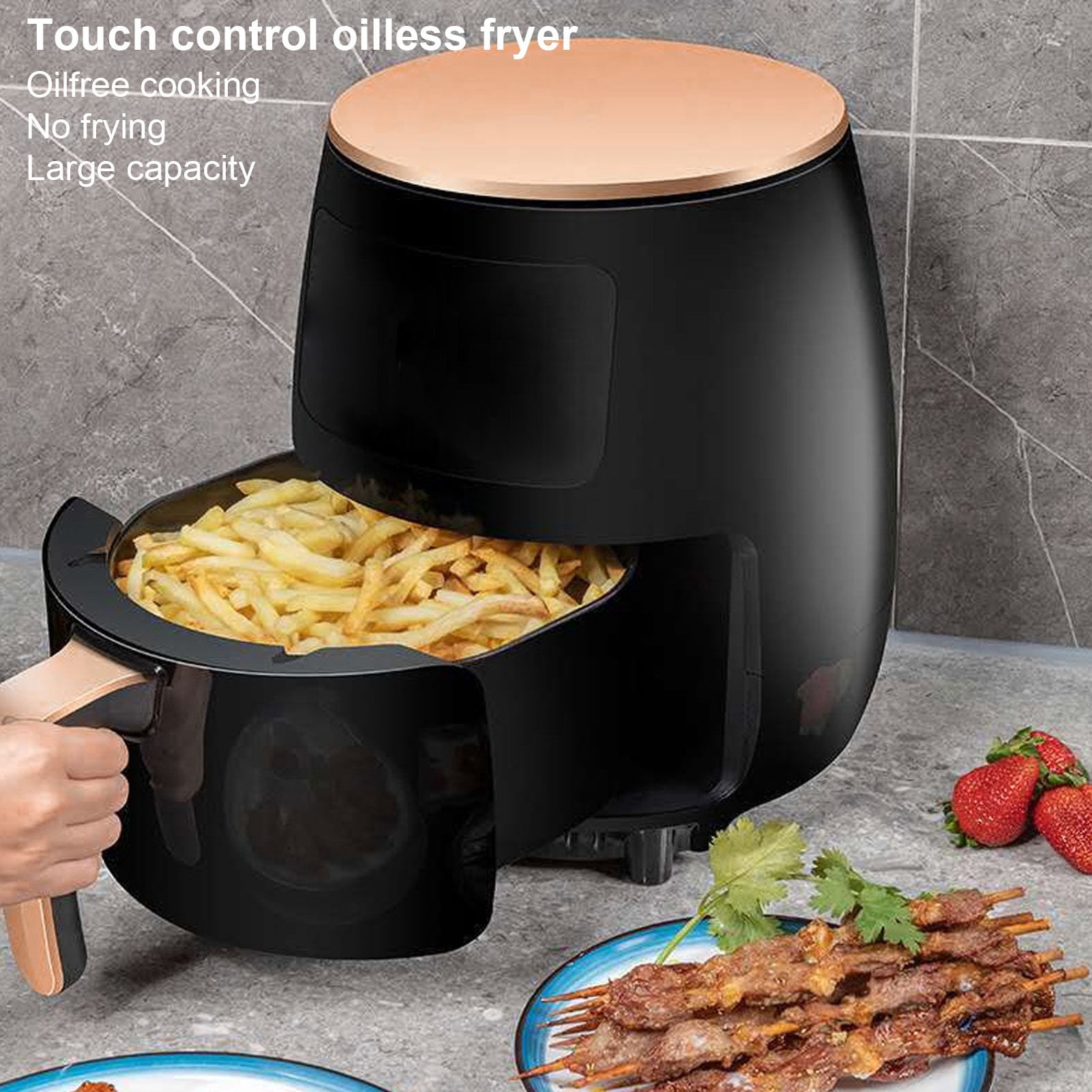 The 6.5QT Oil-Free Air Fryer – your ultimate kitchen companion! Engineered to revolutionize home cooking, this air fryer combines advanced technology with a sleek, user-friendly design to deliver mouthwatering meals with up to 85% less fat than traditional deep-frying methods. Large Capacity: Cook enough food for your whole family with the spacious 6.5qt capacity, making it perfect for preparing big meals in just one batch. Healthier Cooking: Enjoy delicious fried dishes with less oil, this electric oilless fryer allows you to indulge in your favorite foods without compromising your health and wellness. Versatile Use: This versatile electric oilless cooker serves as a fryer, baking oven, grill, and roaster, providing you with a wide range of cooking options to suit your culinary needs. Easy to Use: The intuitive computer style control panel makes it easy for you to select your preferred cooking settings and keep track of the progress of your meal. Fast Heating and Efficient: Featuring quick heating technology, this electric oilless cooker offers fast, energy efficient cooking. Specification: Item Type: Oilless Fryer Material: ABS, Aluminum Color: Black Voltage: 110V Power: 1600W Capacity: 6L/6.5QT Weight: Approx. 3350.00g / 118.17oz Package List: 1 x Oilless Fryer 1 x Base