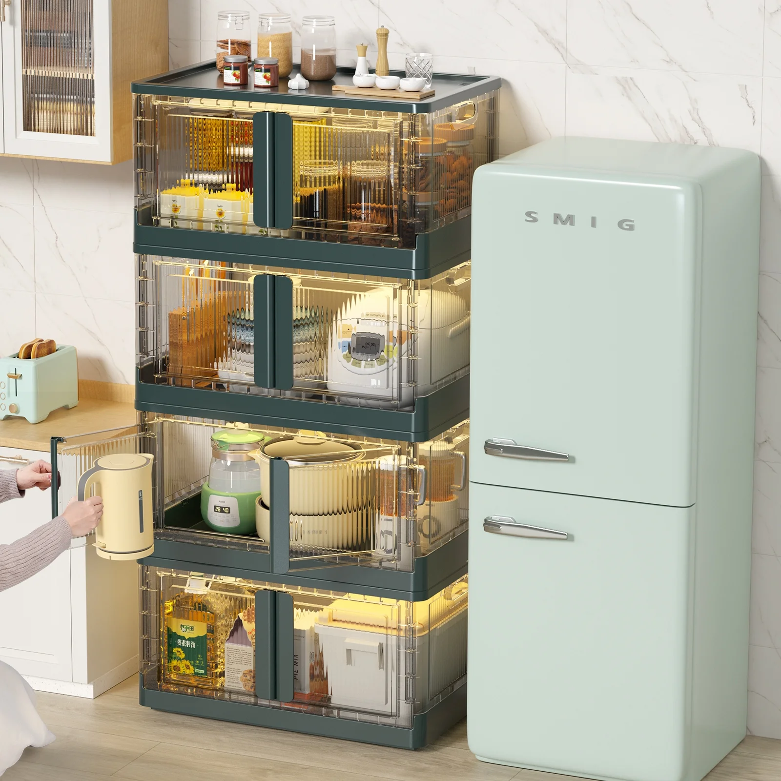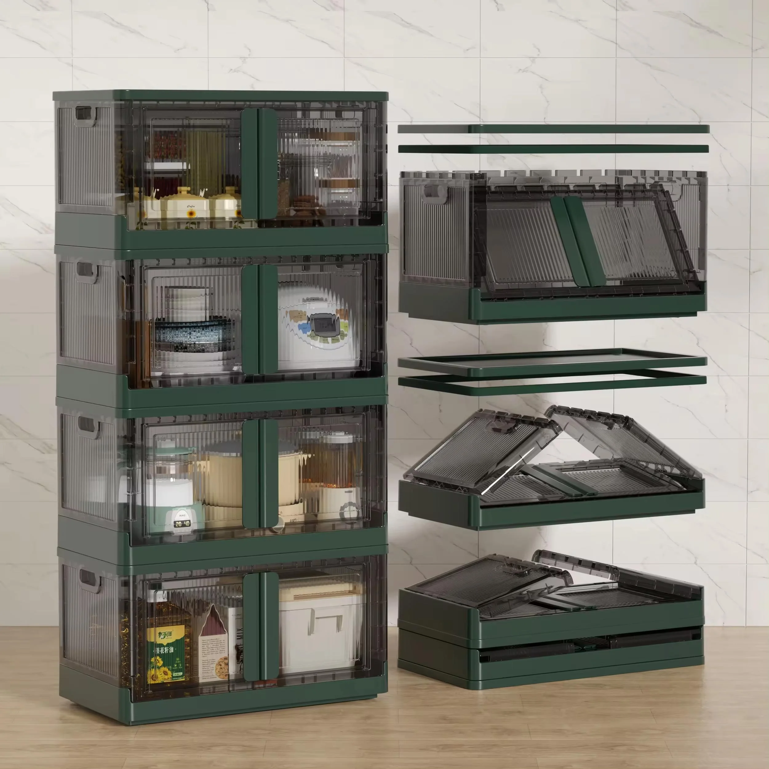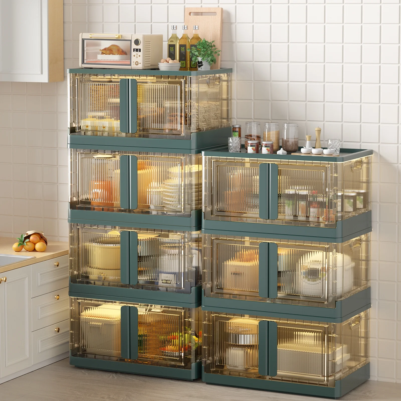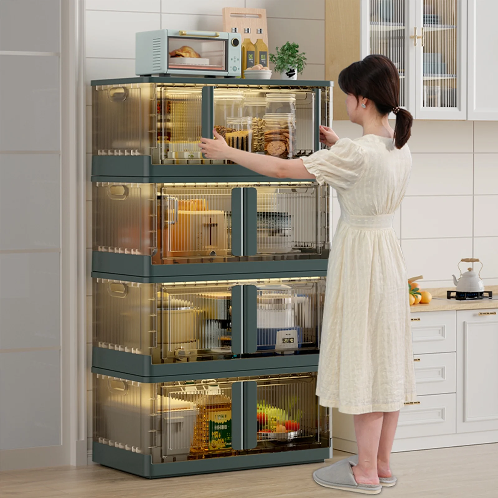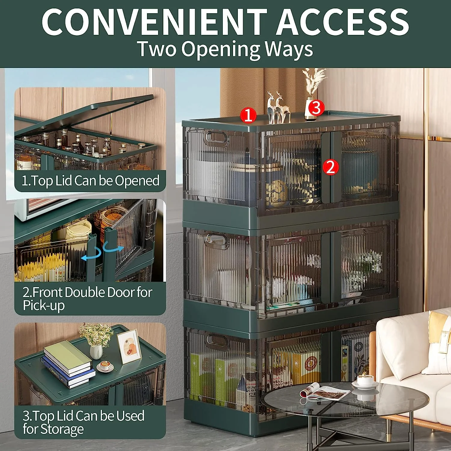 【Multi Function】The folding storage box is a versatile storage bins that can be used as bathroom organizer, kitchen organization, closet organizer, dog food storage container, food storage containers, laundry room organization, toy storage, car organizer, Christmas decorations clearance, bedroom storage, snack organizer, book bins, hat storage, etc. 【Foldable & Install-Free】TECHVIDA collapsible and install-free storage bin, enables to fold flat, only takes about 10 seconds to snap pieces together, no instructions or tools needed, easy-assemble foldable bin. 【Two Opening Ways】 With top lid and the front doors, make it easy to access to stuffs from different directions. The front door built in lock buckles to lock and unlock the door. 【Stackable & Moveable】Made of durable and heavy-duty PP material, which is sturdy, odorless, and durable. Built in 4 wheels on the bottom and 4 grooves in the top lid, enable to move left and right and stack bins stable. 【Large Storage Capacity】The tote for storage size: 25.19″ L*15.74″ W, 56.6″H. Maximum load capacity 25 Gal. Sturdy enough to bear weight up to 250 lbs. Handel design on the left and right side, perform well in lifting the bins up. This is a space saver bin, a must have for household, an ideal storage bin that keep your home neat and tidy.
