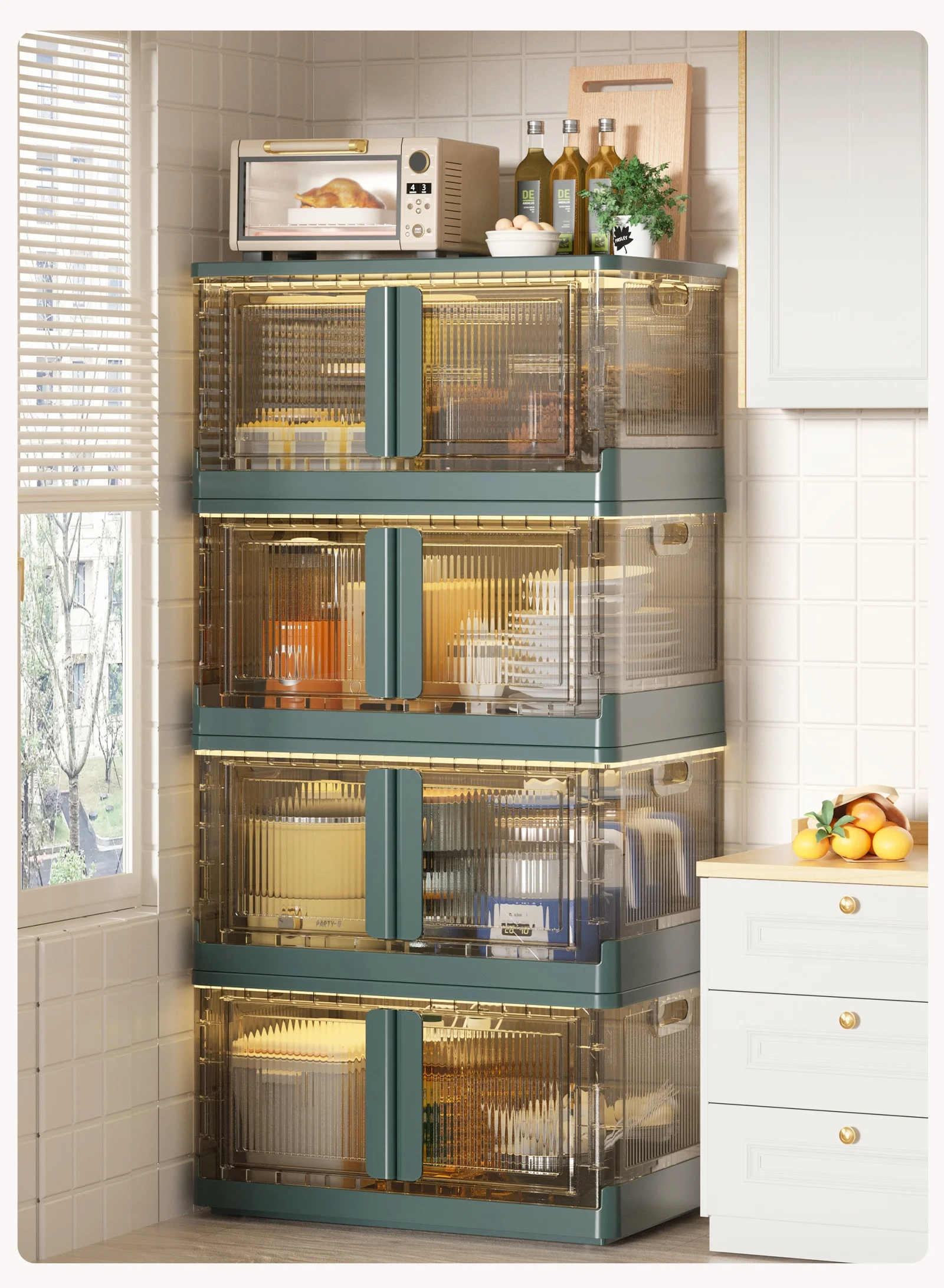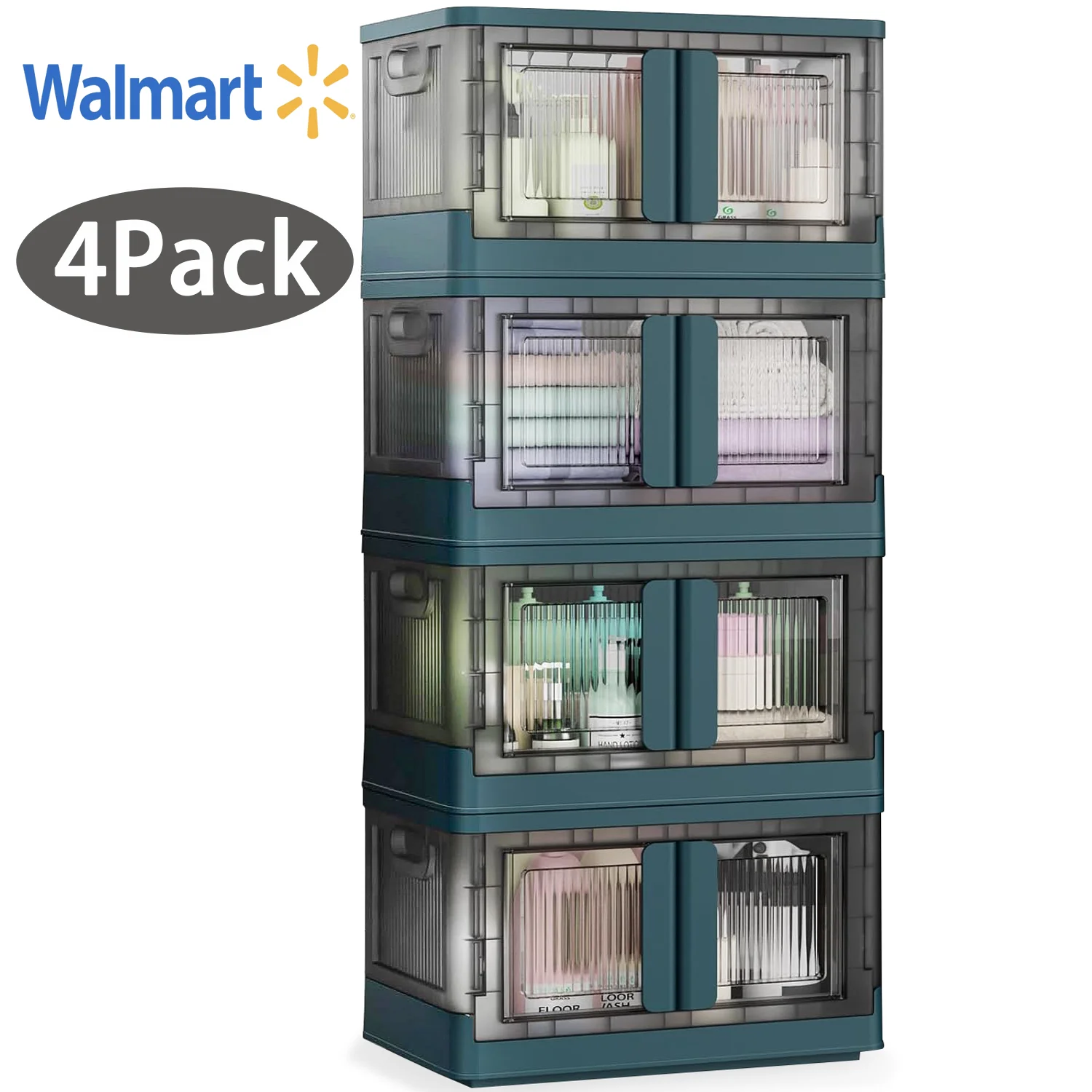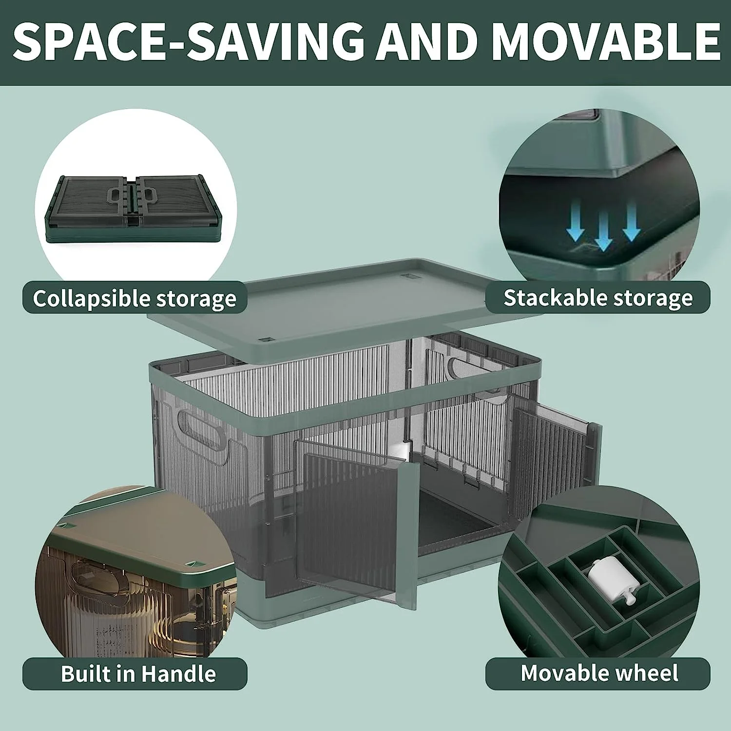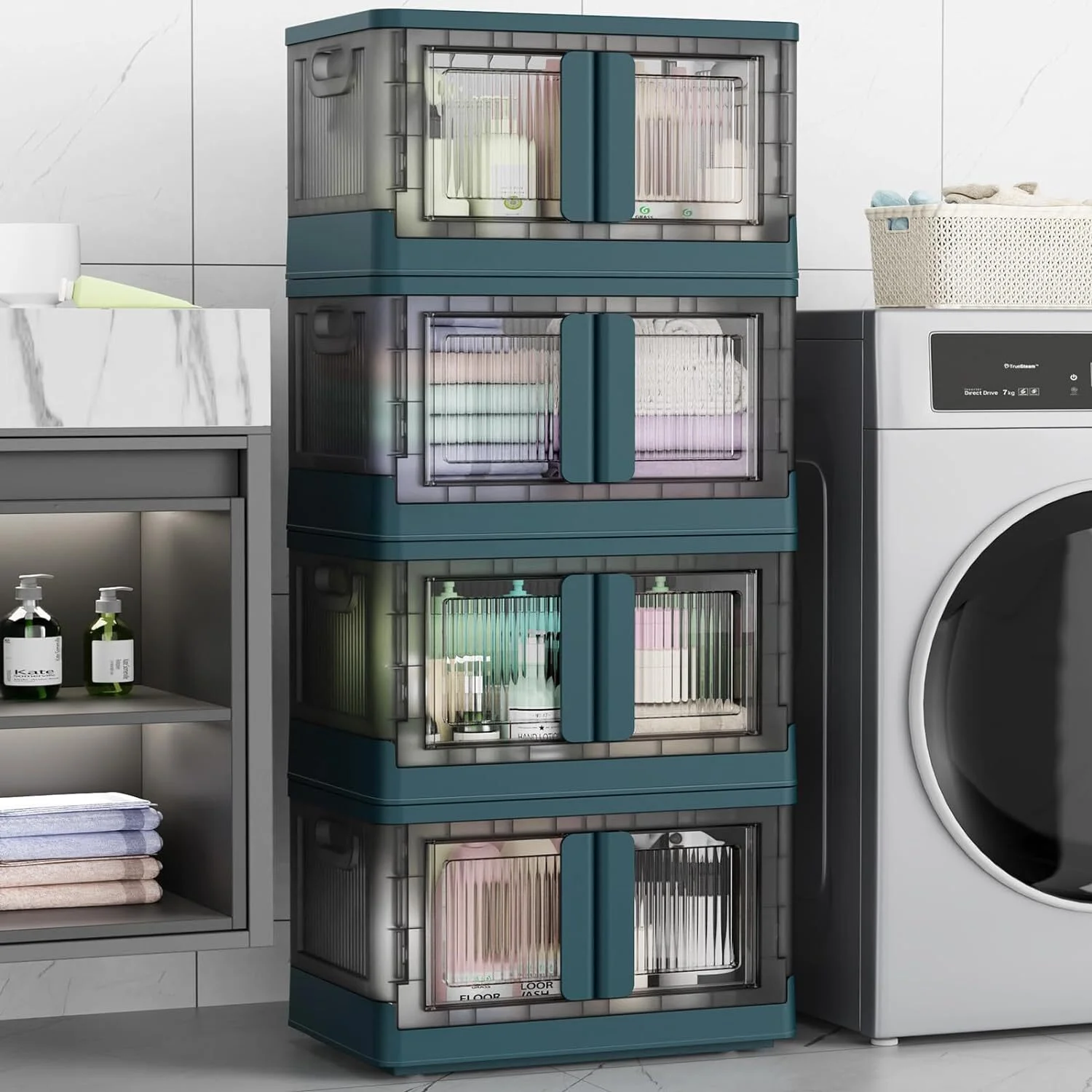 TECHVIDA Storage Bins with Lids 4 Packs 25 Gal Collapsible Storage Cabinet for Closet Organizers, Plastic Container for Clothes, Books,Stackable Storage Box with Wheels for Home(Green)