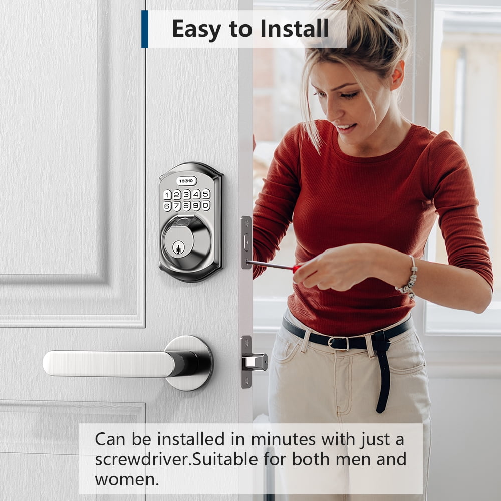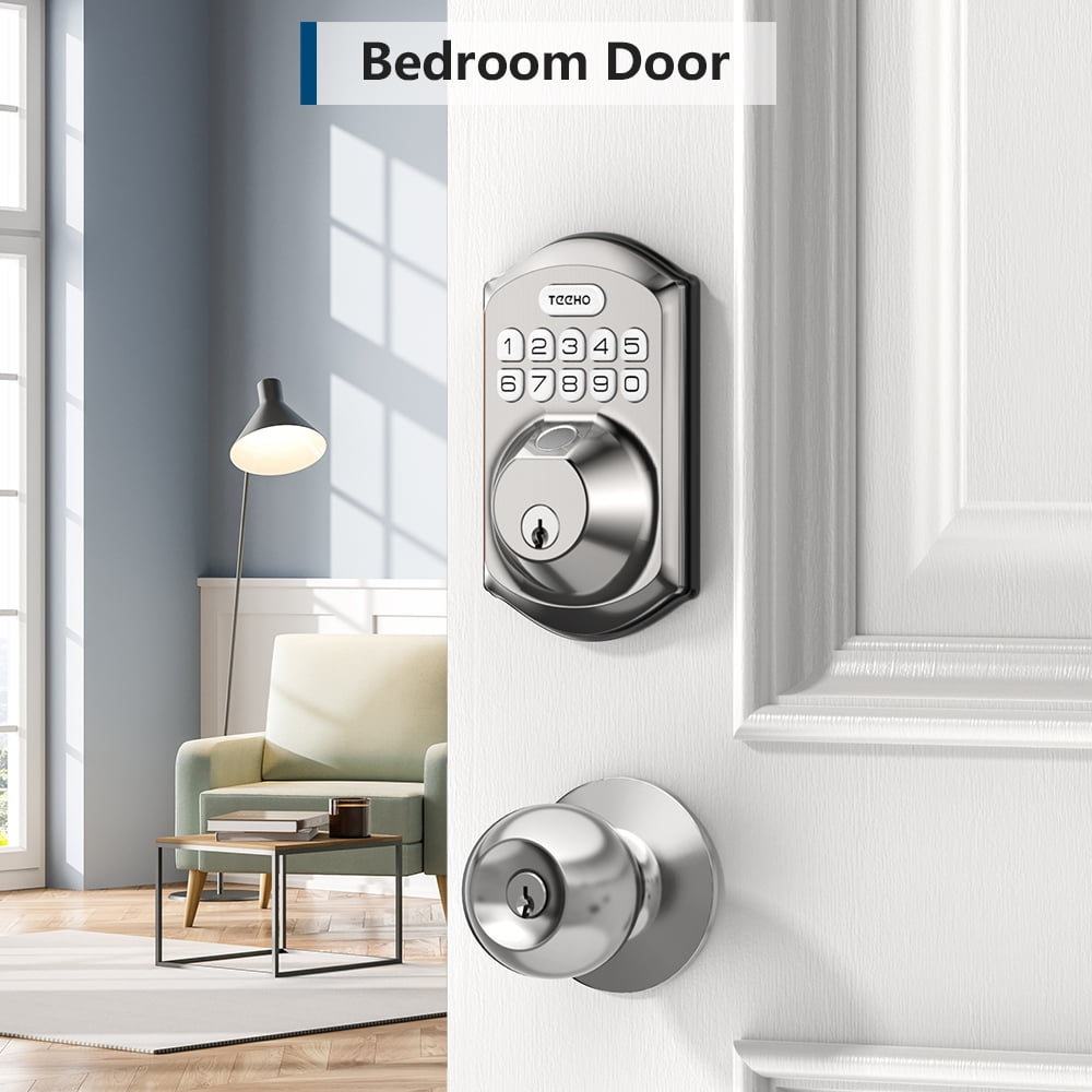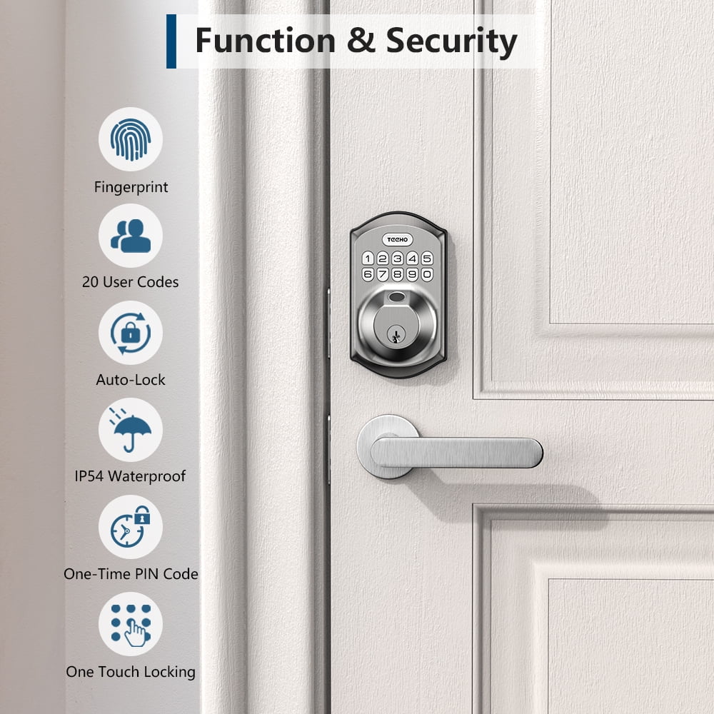 Teeho Fingerprint Keypad Keyless Entry Smart Door Lock, Electronic Deadbolt, Easy Installation, Satin Nickel, Size: