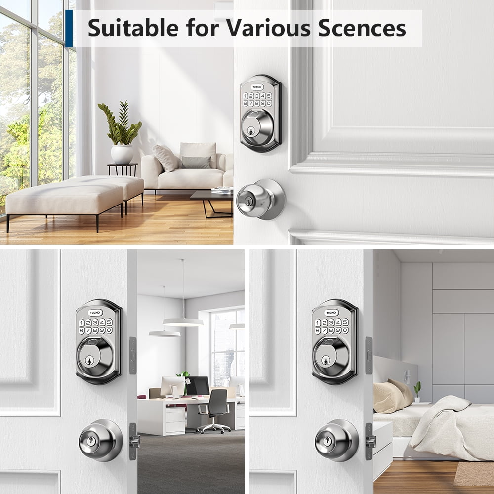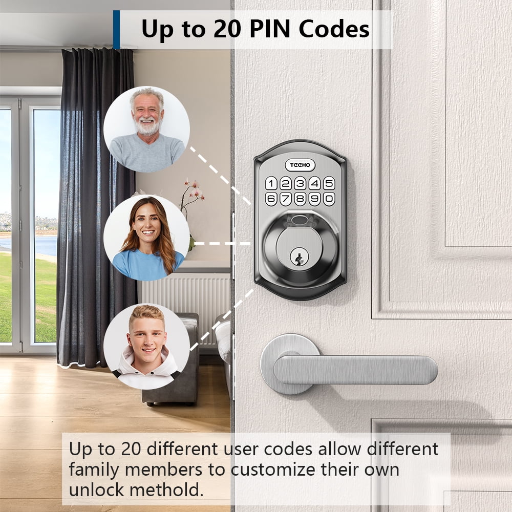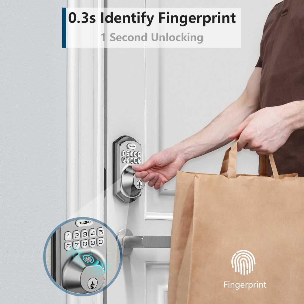 ????️ Convenient Keyless Entry: Grant access to up to 20 family members with unique access codes and fingerprints. You can also create temporary codes for guests, ensuring flexibility and security. ????️Secure Fingerprint Unlock: Experience rapid access with our biometric fingerprint technology, which unlocks your door in just 1 second after recognizing your fingerprint in only 0.3 seconds. ????️Smart Locking Features: Customize the automatic locking mechanism to engage in 10 to 99 seconds. For added convenience, utilize the one-touch auto-lock feature by pressing and holding any key on the keypad for just 2 seconds. ????️One-Time Code for Enhanced Security: Easily set a one-time PIN code for door access that automatically expires after use, providing an additional layer of security for your home. ????️Quick and Easy Installation: The TEEHO fingerprint door lock can be installed in just minutes with a screwdriver, making it user-friendly for everyone.