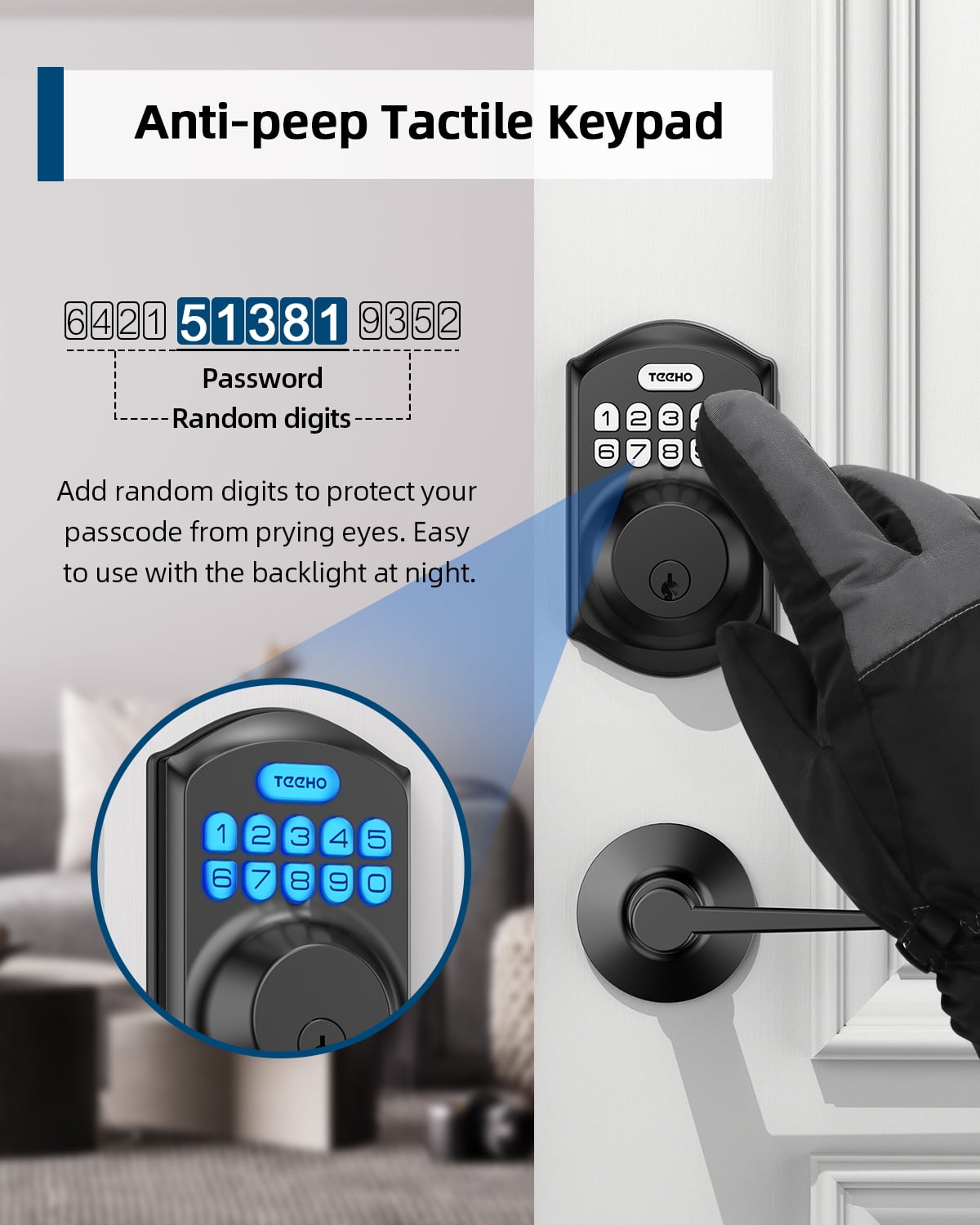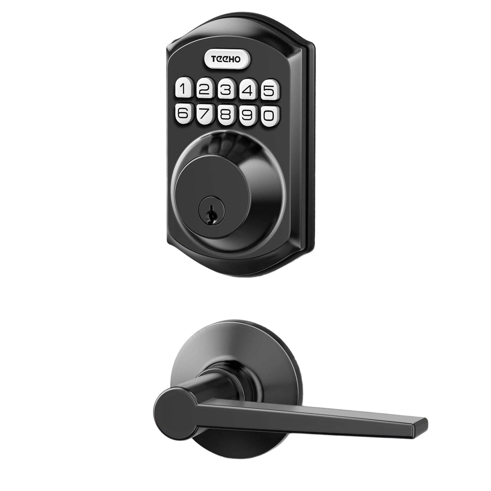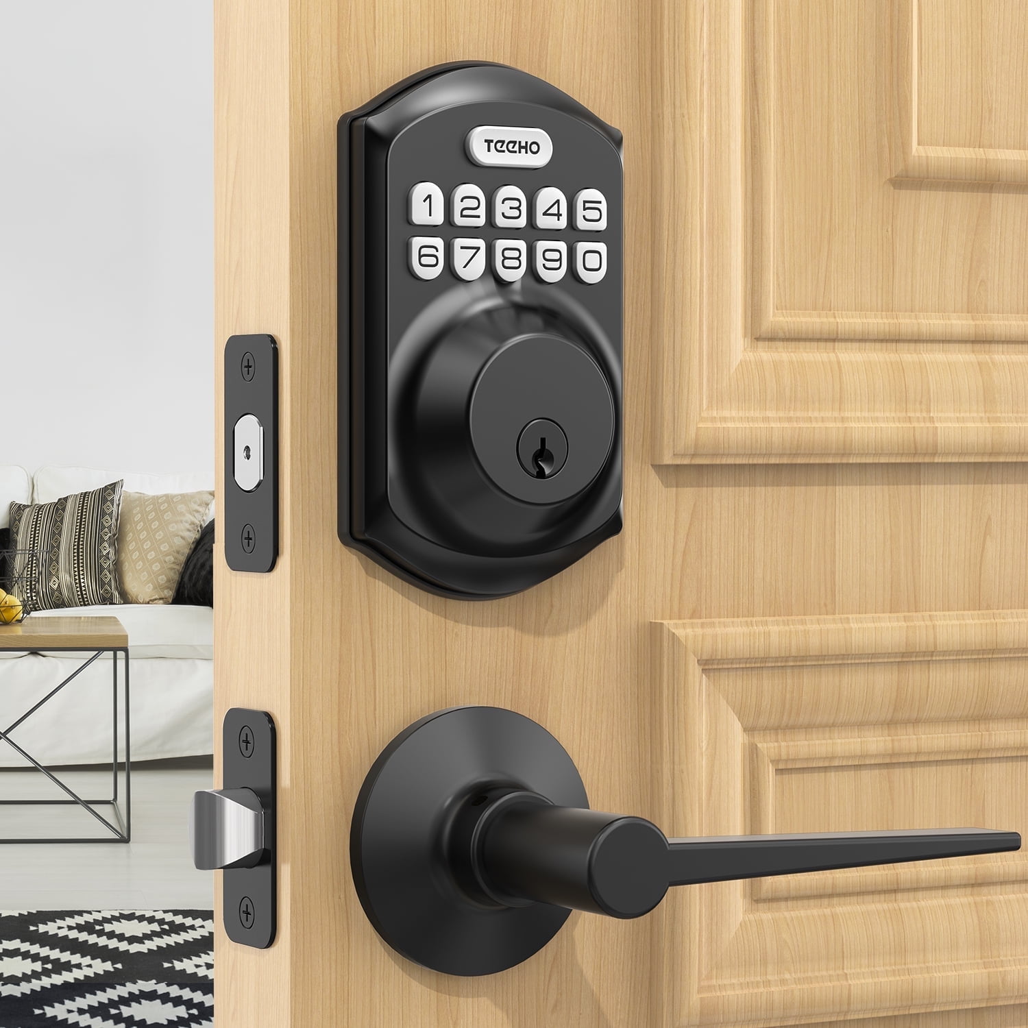 TEEHO Keyless Entry Door Lock with 2 Handles Set, Keypad Deadbolt Smart Door Locks, Electronic Digital Lock for Home Front Door Easy Installation- Matte Black