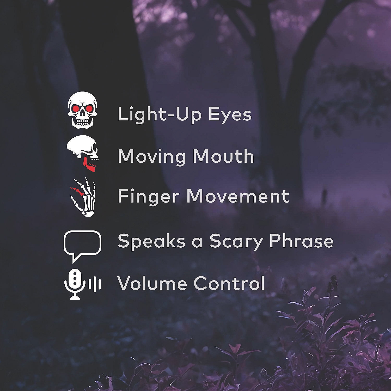This ghoulish creature will leave a haunting impression on your party guests. This Crouching Grave Digger will be a great addition to your haunted cemetery scene. The prop features a ghoulish figure with light up eyes, long stringy hair, exposed skeleton chest, grey tattered clothing and shovel prop. He beckons with a Moving Finger for you to come and see your final resting place, while his Moving Mouth cackles as he Says his unnerving Phrase and his Eyes blink with a Blue sinister Light.