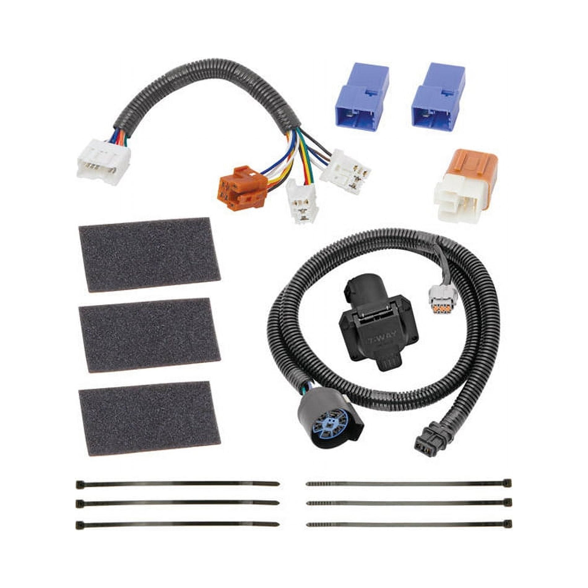 Tow harness wiring package includes a 16 gauge bonded wire with 4-flat plug and cap Exact replacement for a damaged factory wiring harness Upgrades vehicles from 4-flat factory wiring to 6- or 7-way connectors for more towing options Connects directly to standard factory connector, no splicing or special tools required Compatible vehicle models: 2005-2020 Nissan Frontier, 2005-2007 Nissan Pathfinder, 2008-2012 Nissan Pathfinder (except those with factory 4-flat connectors), 2005-2015 Nissan Xterra, and 2009-2012 Suzuki Equator Simple, easy-to-follow instructions and no tools required Excellent resource for upgrading the performance of your vehicle Color: Black Manufacturer warranty: 1-year warranty
