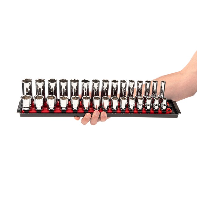 - 15-pc 1/2 in drive deep 6-point metric sockets: 10, 11, 12, 13, 14, 15, 16, 17, 18, 19, 20, 21, 22, 23, 24 mm