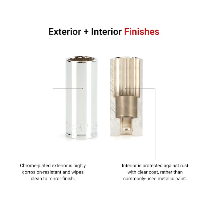 - Beveled inner rim of the socket opening helps guide it smoothly onto fasteners
