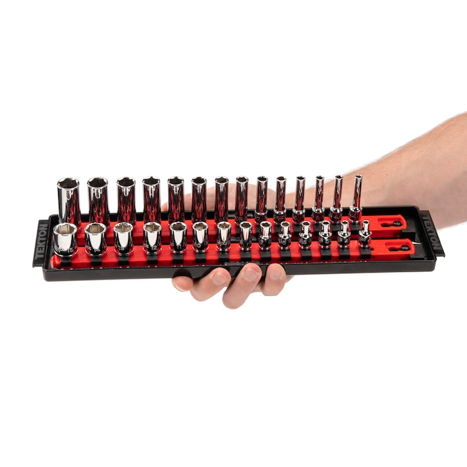 - 11-pc 1/4 in drive deep 6-point inch sockets: 5/32, 3/16, 7/32, 1/4, 9/32, 5/16, 11/32, 3/8, 7/16, 1/2, 9/16 in