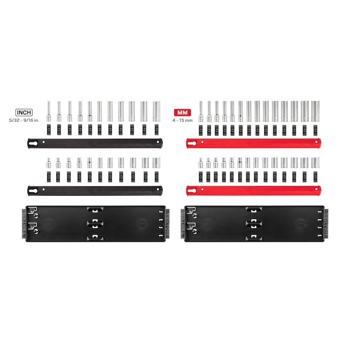 - 14-pc 1/4 in drive standard 6-point metric sockets: 4, 4.5, 5, 5.5, 6, 7, 8, 9, 10, 11, 12, 13, 14, 15 mm