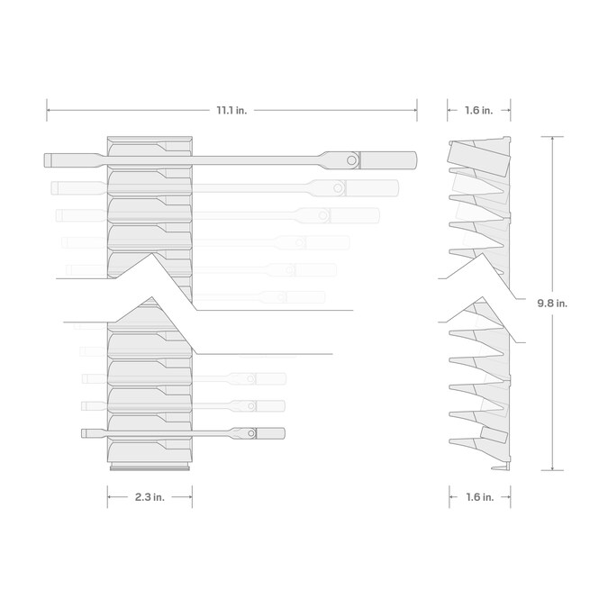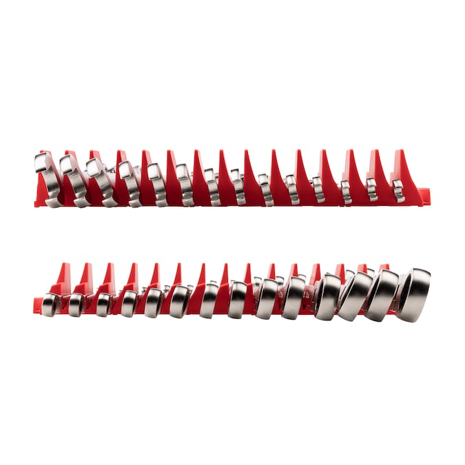 Each Tekton ratcheting flex head wrench is permanently marked with both a high-visibility laser marking and a stamped marking for easy size identification. The 12-point box end fits multiple types of fasteners including 6-point, 12-point, and square. The flex head sweeps smoothly through 180-degrees without any set positions. This allows the wrench to operate at any angle and navigate around obstructions in its swing path. The wrench is abrasive-blasted to create a finely textured finish and then plated with a trivalent chrome process, ensuring that the finish won’t flake off or corrode over time. The set includes a modular wrench organizer that fits most toolbox drawers, keeping your ratcheting wrenches neatly arranged with consistent spacing.