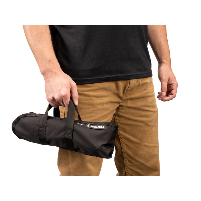 Each Tekton ratcheting flex head wrench is permanently marked with both a high-visibility laser marking and a stamped marking for easy size identification. The 12-point box end fits multiple types of fasteners including 6-point, 12-point, and square. The flex head sweeps smoothly through 180-degrees without any set positions. This allows the wrench to operate at any angle and navigate around obstructions in its swing path. The wrench is abrasive-blasted to create a finely textured finish and then plated with a trivalent chrome process, ensuring that the finish won’t flake off or corrode over time. Carry your ratcheting wrenches anywhere with the compact roll-up pouch that keeps wrenches well-packed and unable to slide out.