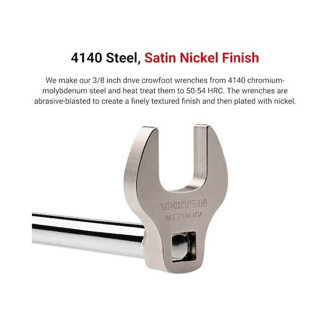 - Satin Finish – Our crowfoot wrenches are made from 4140 chromium-molybdenum steel that’s heat-treated to 50-54 HRC and abrasive-blasted for a finely textured finish