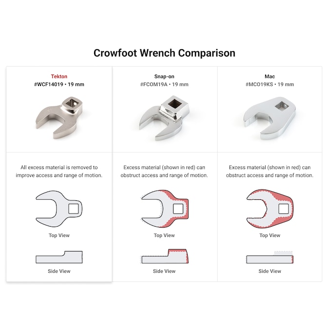- Exceeds Performance Standards – Tekton 3/8 inch drive crowfoot wrenches greatly exceed the ASME B1074.100-2020 strength requirements for minimum proof torque
