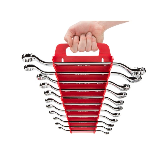• Includes wrench holders with space-saving folding handles and nonslip grippers to lock in wrenches