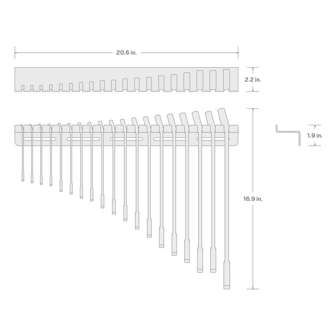 - 19-tool combination wrench wall hanger with size label stickers