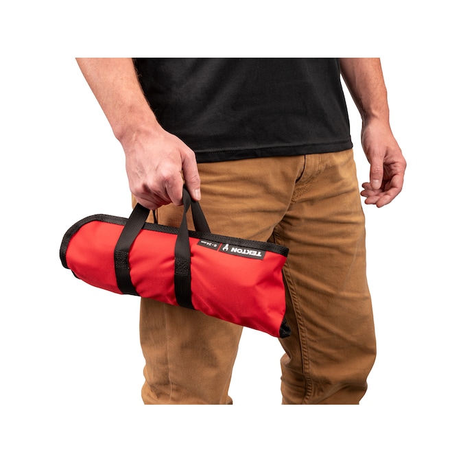 Each Tekton ratcheting flex head wrench is permanently marked with both a high-visibility laser marking and a stamped marking for easy size identification. The 12-point box end fits multiple types of fasteners including 6-point, 12-point, and square. The flex head sweeps smoothly through 180-degrees without any set positions. This allows the wrench to operate at any angle and navigate around obstructions in its swing path. The wrench is abrasive-blasted to create a finely textured finish and then plated with a trivalent chrome process, ensuring that the finish won’t flake off or corrode over time. Carry your ratcheting wrenches anywhere with the compact roll-up pouch that keeps wrenches well-packed and unable to slide out.