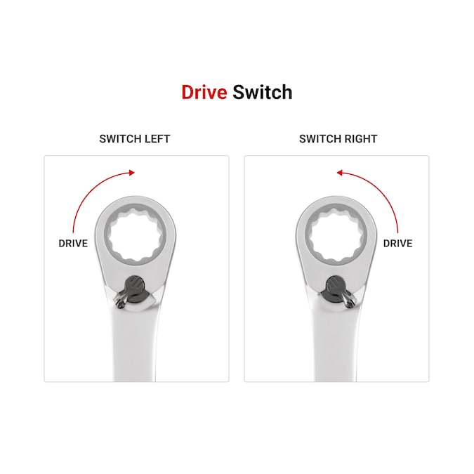 - Drive Switch – The drive switch allows you to easily switch ratcheting directions while working