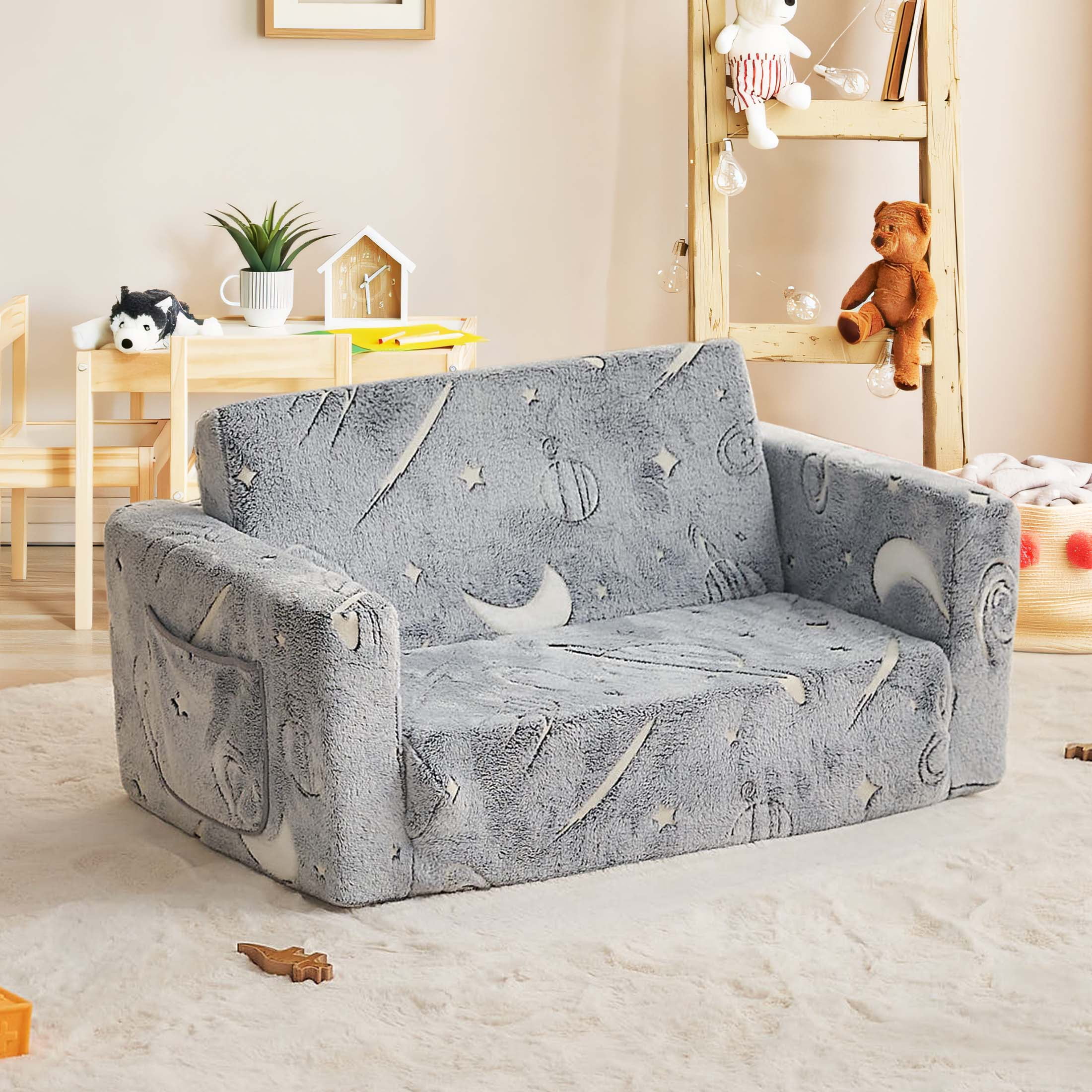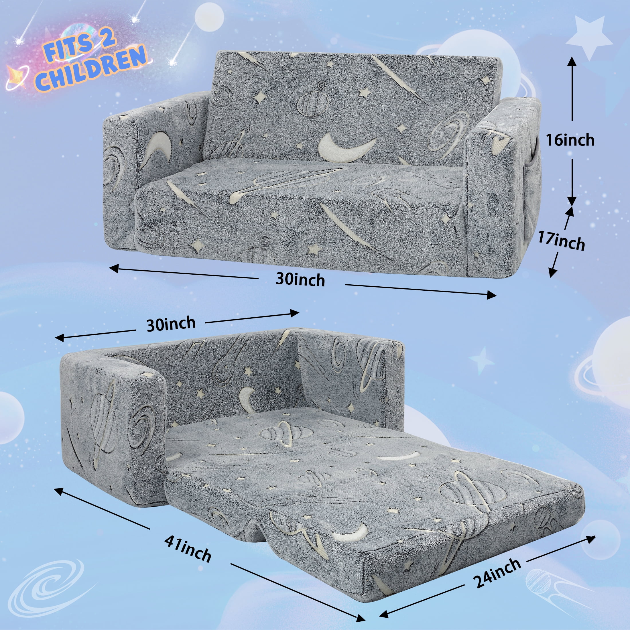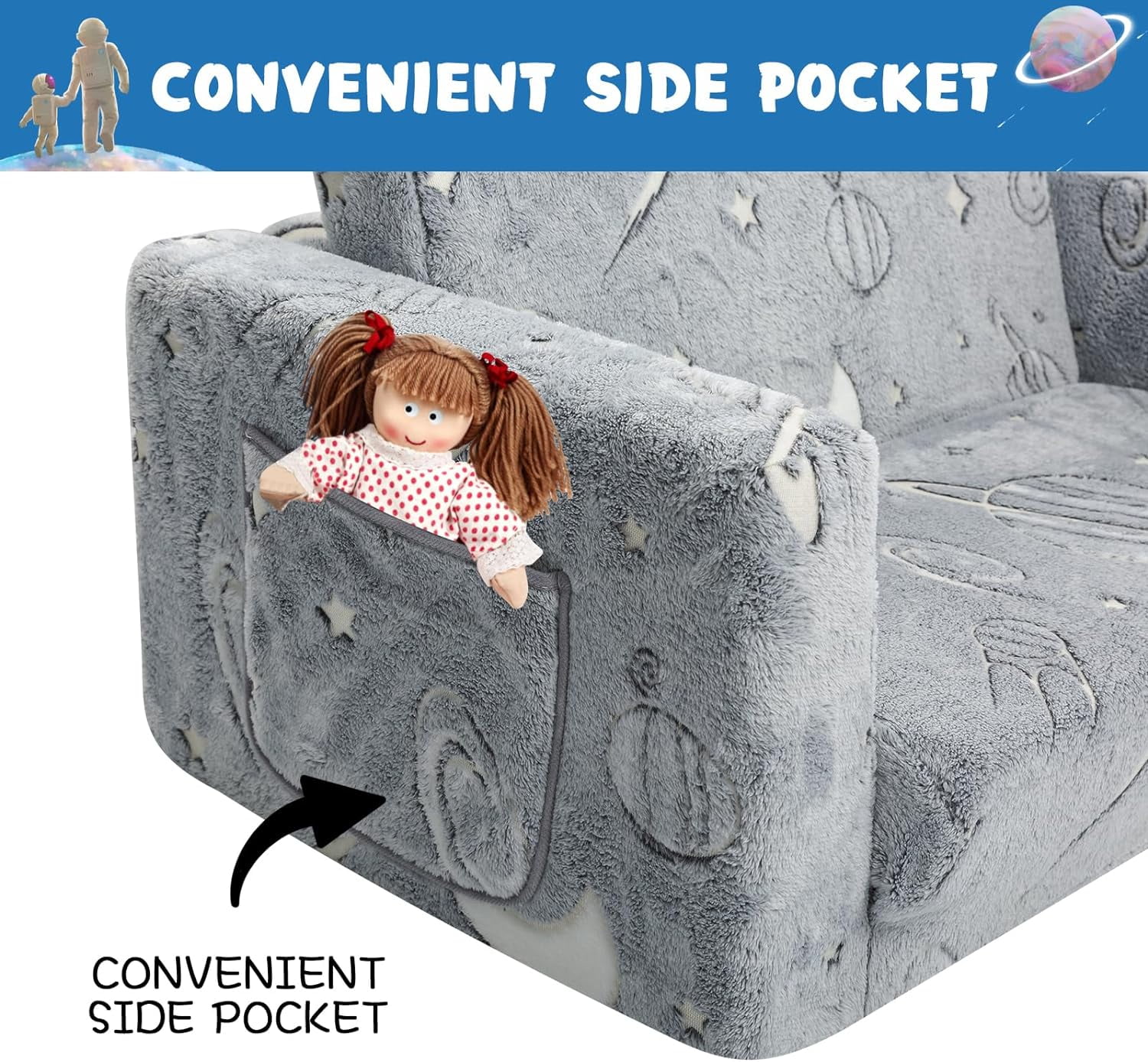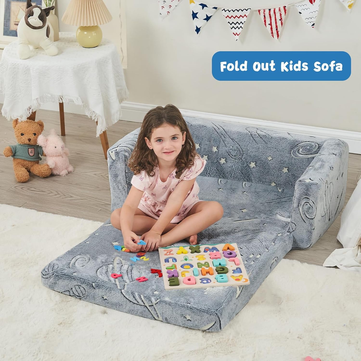 Kids Couch Toddler Chair Folding-Fold Out Flip Open Kids Sofa Extra Wide Glow in The Dark Baby Convertible Sofa to Lounger Pull Out Couch for Playroom,Foldable Toddler Bed for Kids Girls Boys