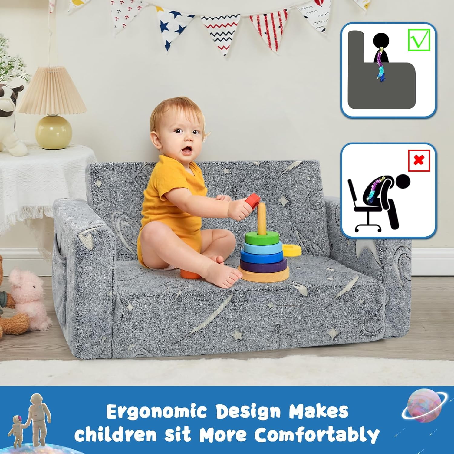 Teler Kids Sofa Toddler Couch Extra Wide Glow in the Dark Baby Convertible Sofa ,Foldable Toddler Bed for Girls Boys