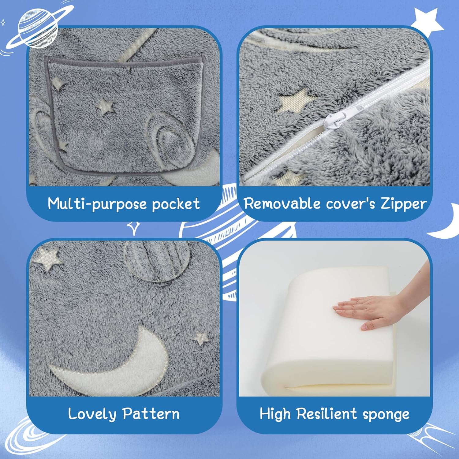 LET BABY FOAM COUCH INFLATE SLOWLY:The foldable floor sofa will be vacuum sealed in a box, when you receive the package, please unfold it and lay it completely flat, and wait patiently for 48 hours, the folding sofa bed will fully return to its original shape. If you want to regain thickness quickly, use a garment steamer to restore the foam to its original shape and steam away wrinkles too. FLIP OPEN SOFA TO LOUNGER CHAIR:XIECUVA Flip-Up foldable sofa is both a baby chair couch and a toddler lounger sofa. The baby sofa chair size is 30″W x 17″D x 16″H ,the Lounger Flipped Open is size at: 30″W x 41″D x 11″H,Comfortably fits 2 small children. Whether sitting or lying down, you can enjoy comfortable foam and thick plush fabric. GROW IN THE DARK CHILDREN SOFA:Unique luminous design, interesting star pattern, just put the toddler sofa under strong light or sunlight for 10-15 minutes, then take it to a dark room to see the magical glow.In dark light, the green glow will create a dreamy atmosphere in your bedroom. LIGHT&CONVENIENT:The foam kids couch for kids to play games,eat snacks, watch TV, reading or just lie down and rest on the sofa. Side pockets store books and toys within easy reach. It’s also light enough that kids can fold it up by themselves anytime, anywhere. At the same time it is very suitable as a birthday gift, baby shower gift, a kids couch in the playroom or a toddler lounge chair in the nursery. WASH&CARE:This kids fold out couch bed is made of high quality polyester short plush, the fabric is comfortable and durable, it is also shrink resistant, fade resistant and shed resistant, the cover is removable, machine wash cold, tumble dry low. If you have any dissatisfaction with our kids sofa, please feel free to contact us. We guarantee that we will provide you with a satisfactory solution.