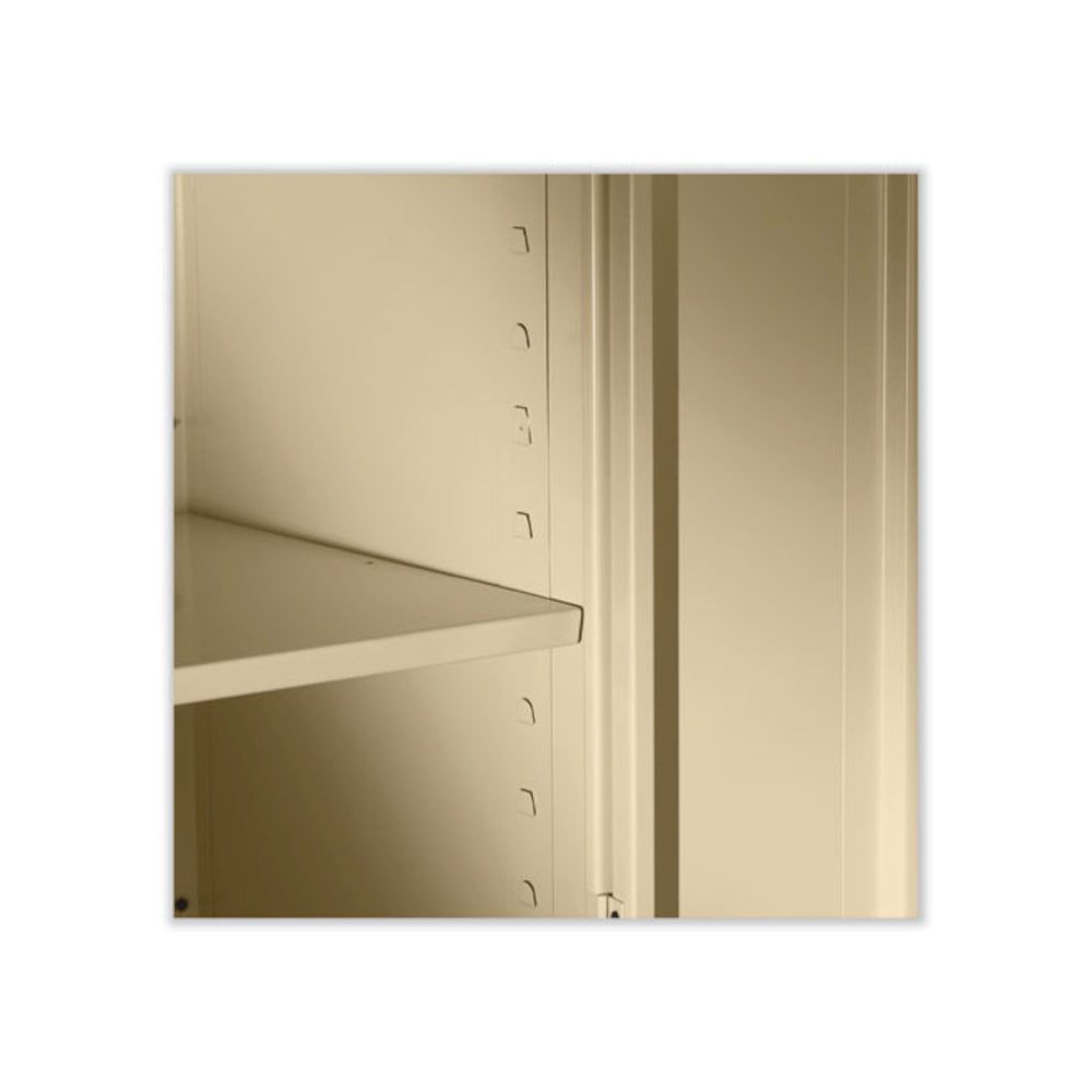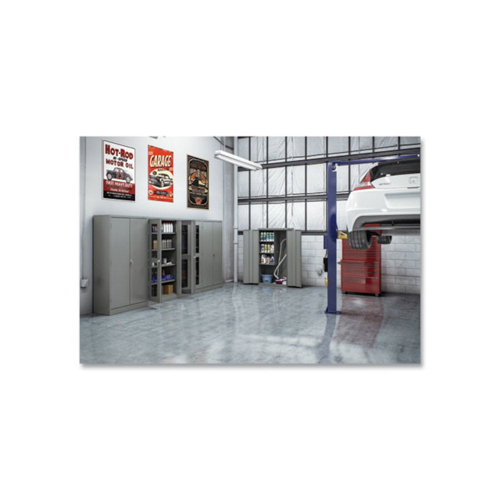 Built with premium quality steel and reinforced doors for long-term performance at an attractive price. Polished chrome handle uses three-point keyed locking to lock both doors. Punched lances in back facilitate ventilation. Shelves adjust in 2″ increments without tools. Integrated shelf support tabs secure shelves tightly to cabinet without clips or added parts. Integrated shelf support tabs secure shelves tightly to cabinet without clips or added parts. Raised base keeps contents out of harm’s way from cleaning liquids.