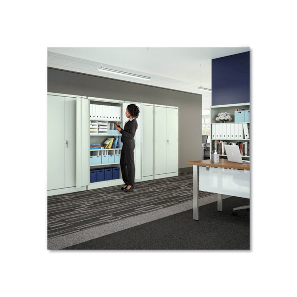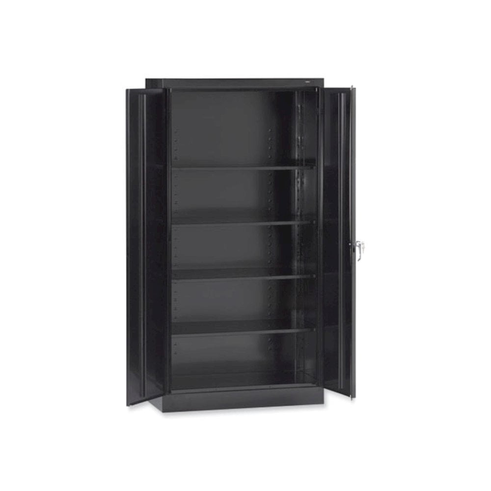 72″ High Standard Cabinet (Unassembled), 36w x 18d x 72h, Black Commercial grade steel storage cabinet. Built with premium quality steel and reinforced doors for long-term performance at an attractive price. Polished chrome handle uses three-point keyed locking to lock both doors. Storage cabinet is electrostatically painted with a tough, long lasting powder finish to ensure years of lasting beauty. Built with premium quality steel and reinforced doors for long-term performance at an attractive price. Polished chrome handle uses three-point keyed locking to lock both doors. Punched lances in back facilitate ventilation. Shelves adjust in 2″ increments without tools. Integrated shelf support tabs secure shelves tightly to cabinet without clips or added parts. Integrated shelf support tabs secure shelves tightly to cabinet without clips or added parts. Raised base keeps contents out of harm’s way from cleaning liquids. – Color: Black – Global Product Type: Office & All-Purpose Storage Cabinets – Material: Heavy Gauge Steel – Number of Compartments: 5 – Number of Shelves: 4 – Overall Depth: 18″ – Overall Height: 72″ – Overall Width: 36″ – Shelf Capacity (Weight): 200 lbs – Special Features: 36w x 18d Cabinet (Unassembled)-150 lb weight capacity per shelf. – Door Quantity: 2 – Compliance Standards: Meets or Exceeds ANSI/BIFMA Standards, SCS Indoor Advantage Gold Certified – Product Biodegradability in Days: 0 – Product Biodegradability Indicator: N – Product Compostability Indicator: N