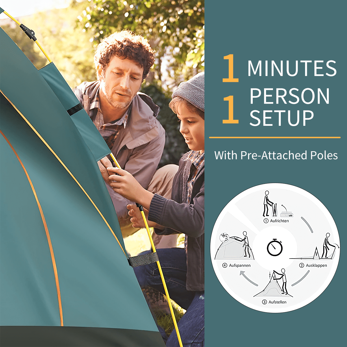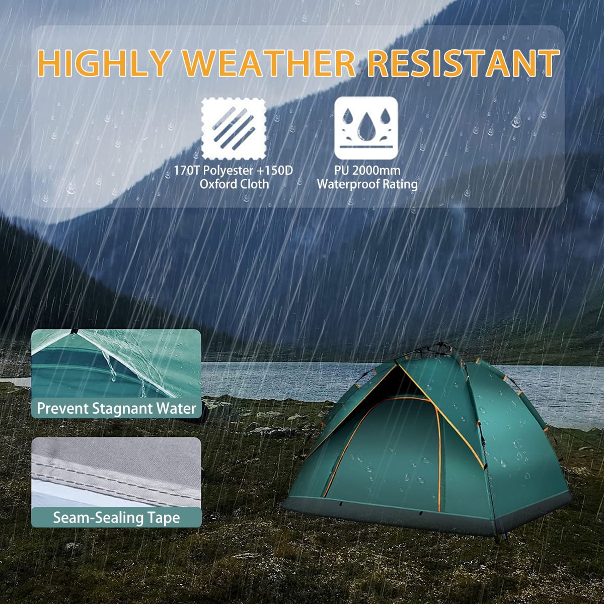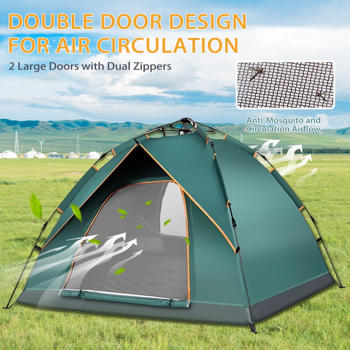 Large window design enhances airflow and visibility D-style door provides easy access and an open view Storage pocket helps keep the interior organized Durable oxford fabric ensures waterproof protection for your belongings Instant pop-up mechanism allows for quick setup in under 1 minute