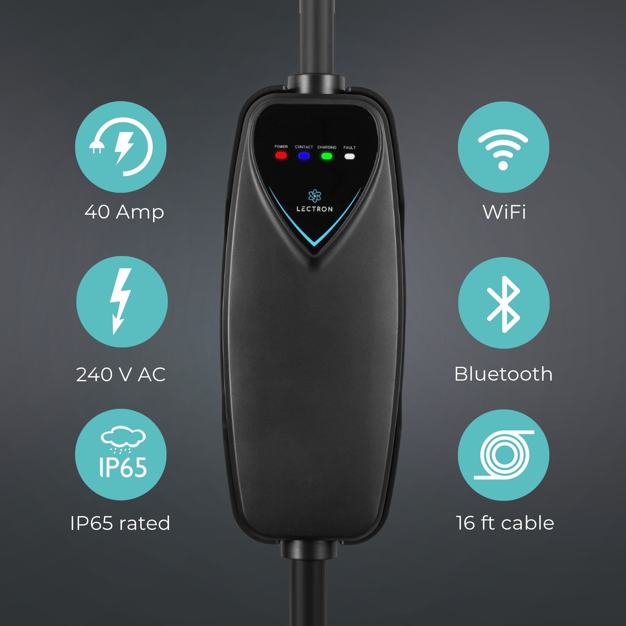 The Lectron Level 2 Tesla Charger (WiFi Version) is your ultimate charging solution, designed for seamless compatibility with Tesla models 3, Y, S, and X, as well as any EV using the North American Charging Standard (NACS). Offering fast charging of up to 36 miles of range per hour with a 9.6 kW/40 Amp output using a NEMA 14-50 outlet, this charger ensures your EV is ready to go when you are. Stay in control with WiFi-enabled smart features via the Lectron App, allowing you to monitor charging status, schedule sessions, and set energy limits. Built with overvoltage, overcurrent, and short-circuit protection and an IP55-rated control box, ensuring a safe and reliable charging session every time. Its portable design, complete with a durable carrying case, makes it ideal for home use or travel.