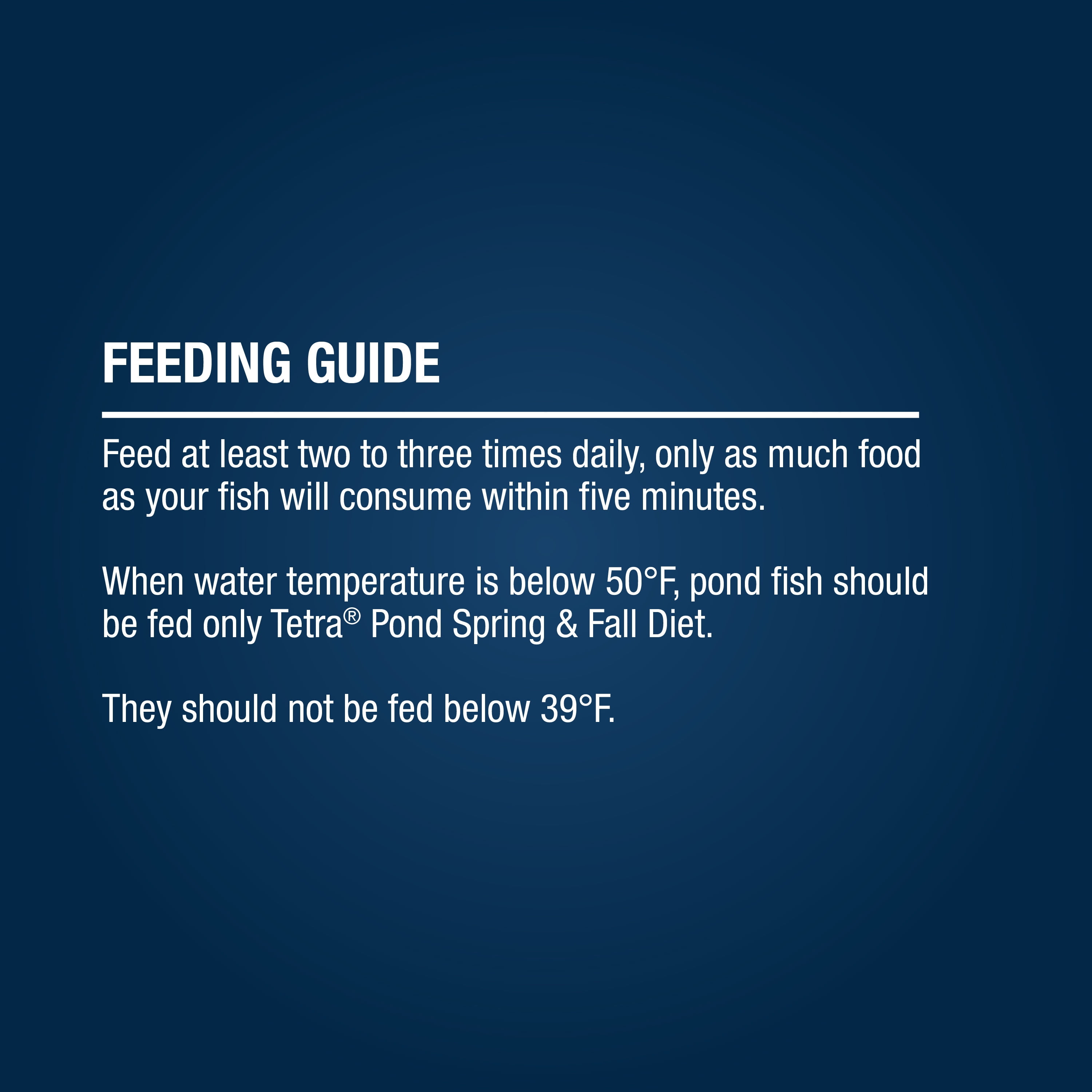 Our most popular pond fish food. TetraPond Pond Sticks provide an ideal maintenance diet for koi, ornamental goldfish and other pond fish species of all sizes. Supplies nutrition for energy, longevity and overall health ? feed in spring, summer and fall when water temperatures are 50 degrees and above.TetraPond Pond Sticks are designed to soften quickly for toothless pond fish. They are highly digestible to help promote clear water and minimize waste. This formula contains vitamins for growth, health and metabolism; amino acids for growth and maintenance; fats for a concentrated energy source; and fiber for healthy and efficient digestion.Feed at least two to three times daily, only as much food as your fish will consume within five minutes. When water temperature is below 50 degrees, pond fish feed with TetraPond Spring & Fall Diet. Fish should not be fed when the temperature is below 39 degrees.Since 1951, Tetra has developed the world?s most comprehensive body of fish food knowledge, and fishkeeping enthusiasts have looked to the brand for products and solutions that add ease and beauty to their home. Whether you’re an experienced hobbyist or just starting out, Tetra has everything you need ? from a large variety of quality fish food and innovative equipment to test kits and decor.