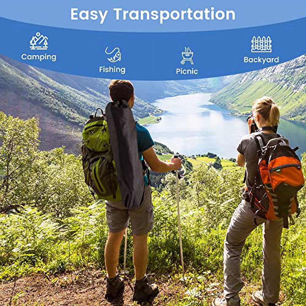 Product Description About us DORTALA was founded in 2012 by a group of young designers who are passionate about life. Providing a simple and pleasant living for global customers is the mission rooted in every member of this team. To accomplish this goal, our team are committed to sourcing products that features both high-quality and cost-effective from our worldwide supply chain partners. We faithfully hope that all people could lead ideal and comfortable lives. DORTALA Swinging Hammock Chairs for Camping If you’re in search of a comfortable and portable camping chair, look no further than this hammock camping chair. The adjustable seat angle and breathable mesh design ensure a comfortable seating experience, while the head pillow adds an extra layer of coziness. With the retractable footrest, you can relax your feet while enjoying the outdoors. The footrest can also be easily removed if necessary. The foldable frame and carrying bag make storage and transport a breeze. Easy to carry and store with folding design and carrying bag Adjustable seat angle satisfies more demands Detachable and retractable footrest makes your feet relaxed 4 step simple installation with the clear instruction Product Highlights Breathable PVC Polyester Fabric Soft Padded Headrest Convenient Side Cup Holder Functional Non-slip Foot Pads Specifications: Color: Black/Navy Material: PVC Polyester, PU, Metal Overall Dimension: 47″ – 63″ x 36″ x 31.5″ -42″ (L x W x H) Seat Dimension: 27″ x 17″ (L x W) Seat Height from the Ground: 15.5″ Footrest: 16.5″ x 8″ x 16″ (L x W x H) Headrest Pillow: 8″ x 4.5″ x 1.5″ (L x W x Thickness) Carrying Bag: 34.5″ x 10″ x 7.5″ (L x W x H) Length Range of Footrest: 25″ – 40″ Net Weight: 14 lbs Weight Capacity of Chair: 330 lbs Package Includes: Swinging Hammock Chairs with Footrest; Carrying Bag; Instruction