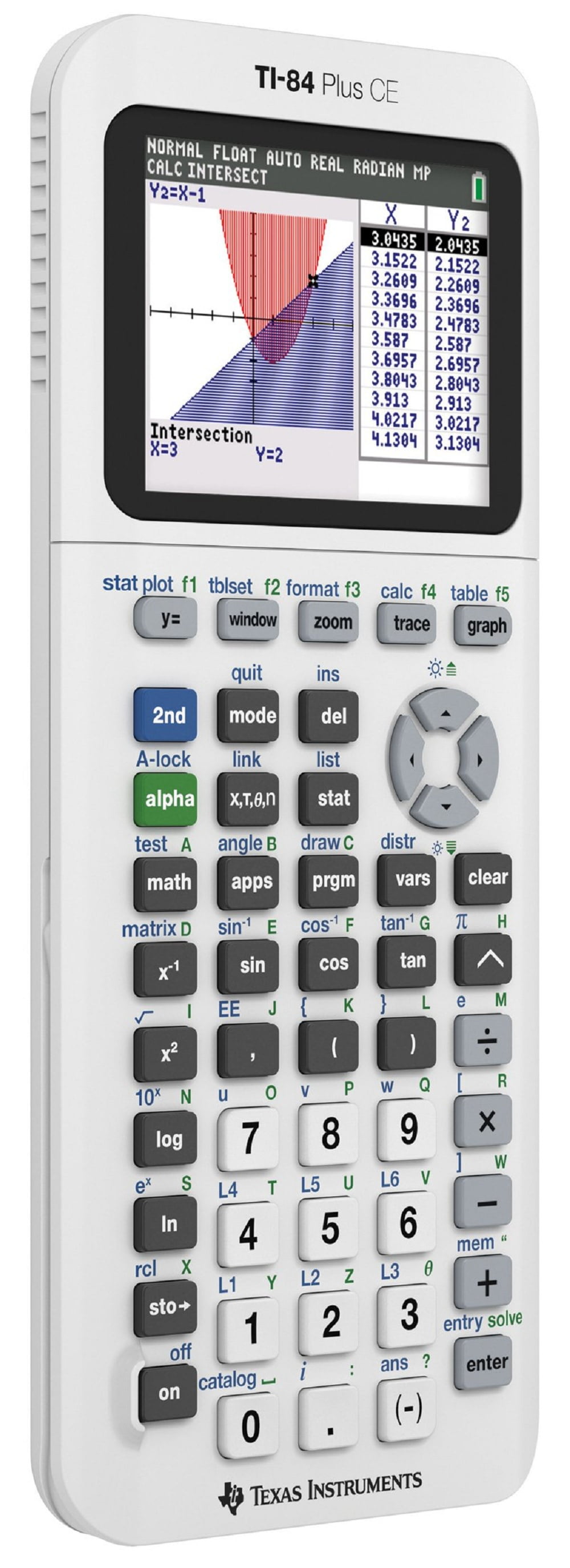 The Texas Instruments TI-84 Plus CE Graphing Calculator in White allows you to visualize concepts clearly and make faster, stronger connections between equations, data and graphs in full color. It’s electronically upgradeable and allows you to have the most up-to-date functionality and software applications. The Texas Instruments graphing calculator has built-in Math Print functionality so you can input and view math symbols, formulas and stacked fractions exactly as they appear in textbooks. TI graph link offers increased capacity and speed. The backlit graphing calculator has advanced functions that can be accessed through pull-down display menus. It also features horizontal and vertical split-screen options and a USB port for computer connectivity and unit-to-unit communication.