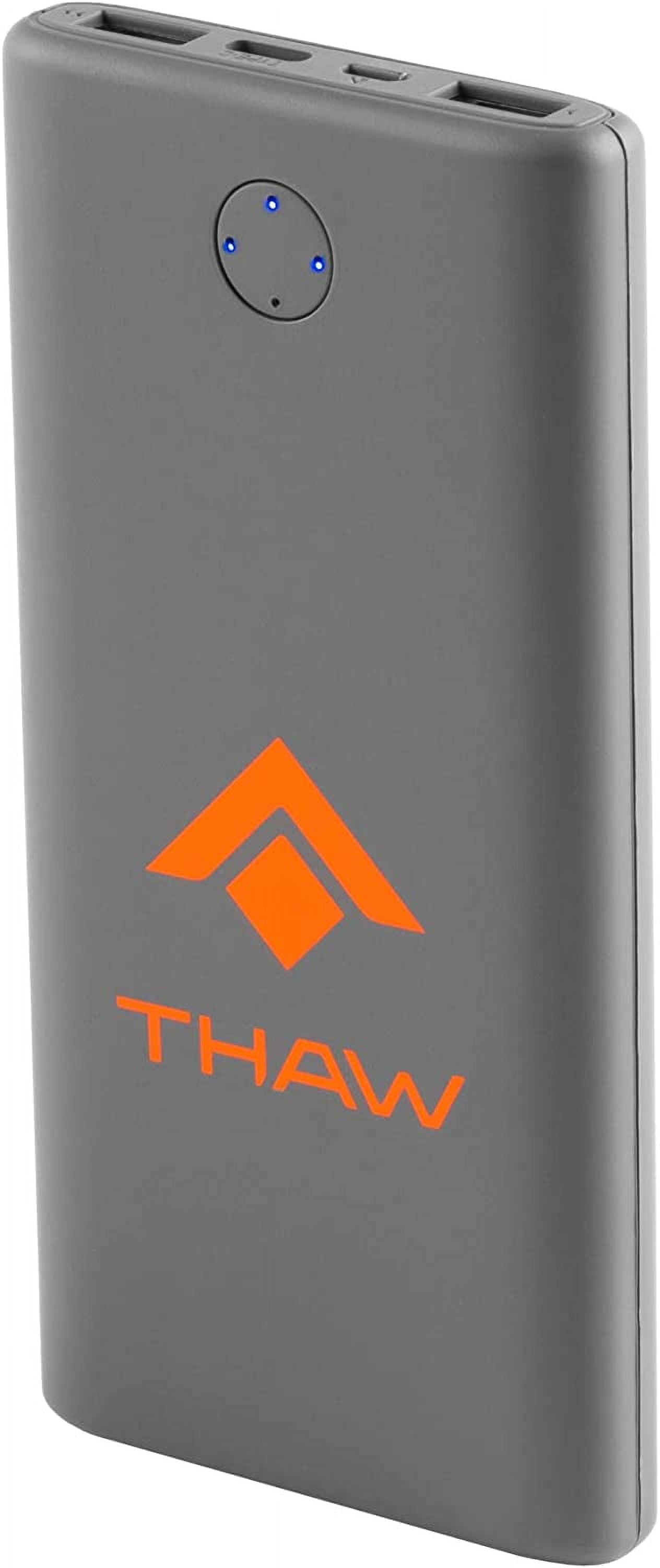 THAW RECHARGABLE HEAT PAD: Up to 17 hours of heat generating power from included power bank, which can also charge your USB powered devices FEATURES: Power bank, tough nylon construction, heat-retaining insulation, battery/charging indicator. Dimensions – 15″ L x 15″ W x 2″ D BATTERY SPECS: Powered by included THAW Battery Pack to Power Heat. Lithium polymer battery pack (5V, 10,000 mAh)