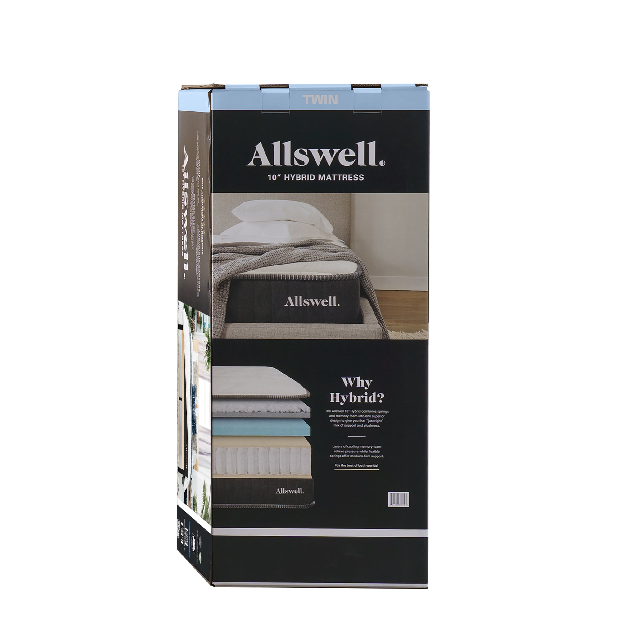 Say hello to better sleep with the Allswell 10” Hybrid Mattress—offering you luxurious comfort at a more-than-reasonable price. This next-level hybrid design features cooling gel memory foam to keep you cool as you sleep, while its cool-to-touch top fabric offers a refreshing surface to rest on. Its durable springs bring a winning combination of medium-firm support and soft, sink-in comfort to provide a premium sleep experience. Expertly designed, this mattress features edge support for a sturdy mattress surface and added support (with no box spring needed). Individually wrapped coils to minimize motion transfer to help you stay soundly asleep throughout the night. With all these stand-out features packed into one ultra-comfy adult mattress at such an affordable price, it’s no wonder the Allswell 10” Hybrid Mattress is a customer favorite.