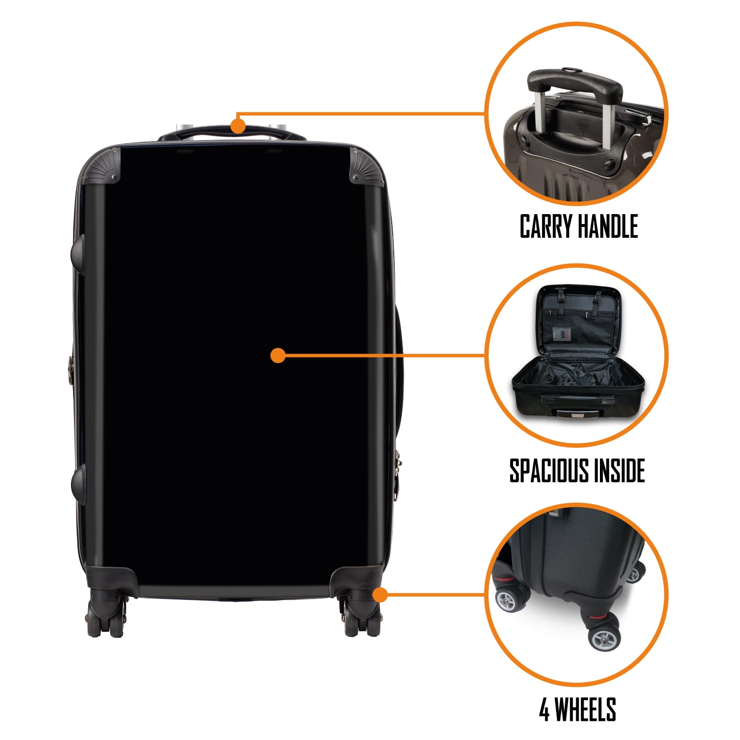 The Tour Series – Rocksax unique suitcases feature some of the most iconic artwork from the worlds greatest music acts. Printed with high definition graphics, protected by an polycarbonate shell, these hard case suitcases are perfect for short or long haul travel. Our suitcases are made from polycarbonate and diamond-debossed ABS hard-shell materials, with an internal alloy telescopic handle with push button system; adjustable to a variety of heights. Side-mounted TSA locks and top and side carry handles are included for easy lifting. Finished with a multi-pocket 210D lining with internal elastic straps help keep your items secured whilst being maneuvered on state-of-the-art 360 degree wheels. Our carry-on, medium and large suitcases are designed to fit inside each other for easy storage. Includes a non-woven polypropylene dust storage cover.