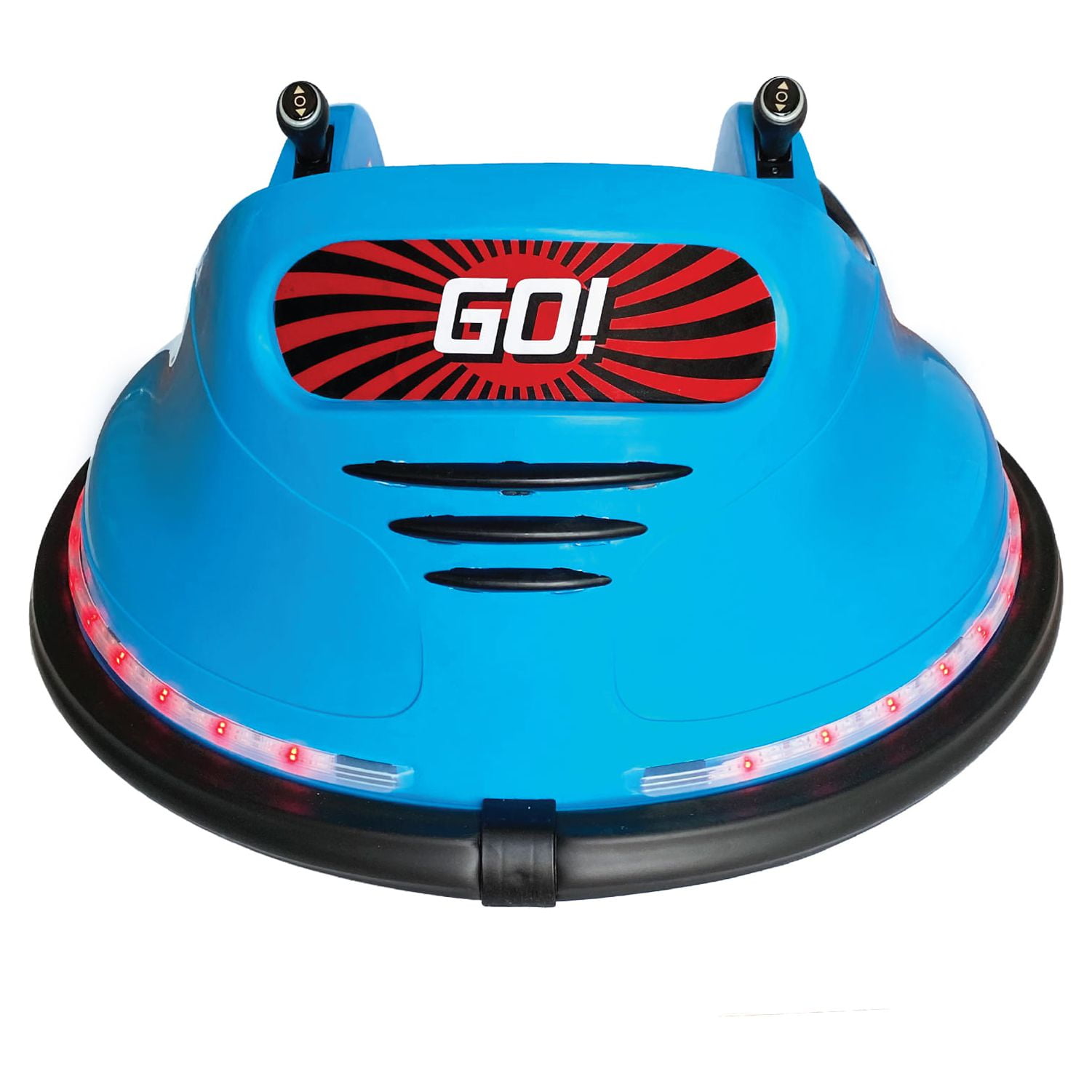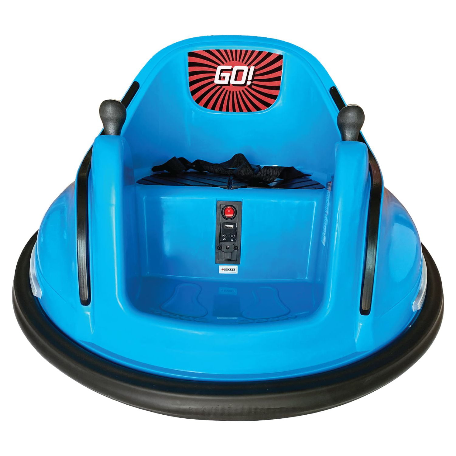 Go! Electric Ride On Bumper Car with 360 Spin, Remote Control Ride On Bumper Car, 6V Battery-Powered with Light and Sound Effects (Blue). This awesome all new 6V battery-powered and fully rechargeable Ride-On Bumper Car can spin a full 360 degrees with simple dual joystick controls. With special light and sound effects it’s just like being at the fair. With a maximum speed of 1.9 mph this bumper car is a great introduction to electric ride-on cars. The Ride-On Bumper Car has an adjustable seat belt, anti-flat tires and a parental remote control for a safer ride. Parents can use the remote control to direct the car and interact with their kids for a fun and entertaining time together. This awesome little car has a soft PVC rubber anti-collision strip allowing you to bump around if you make a wrong turn. With the dual joystick controls kids learn to develop directional skills and hand-eye coordination. Great fun to play with, the Go! Ride-On Bumper Car will spark hours of active play. Simply connect the battery wire, charge the battery and it’s ready to go straight out of the box. The Go! Ride-On Bumper Car is a fully assembled Bumper Car (with power switch/music/light/volume button), with parental remote control and a handy instruction leaflet. Included in this set is an extra sticker sheet with race numbers. Decorate and personalize your Ride-On Bumper Car with your favorite race car numbers. A great gift for boys and girls 3 years and up! For hours of play time with parents or grandparents. For kids who enjoy active play, it will stimulate creativity, fine motor skills and hand-eye coordination.