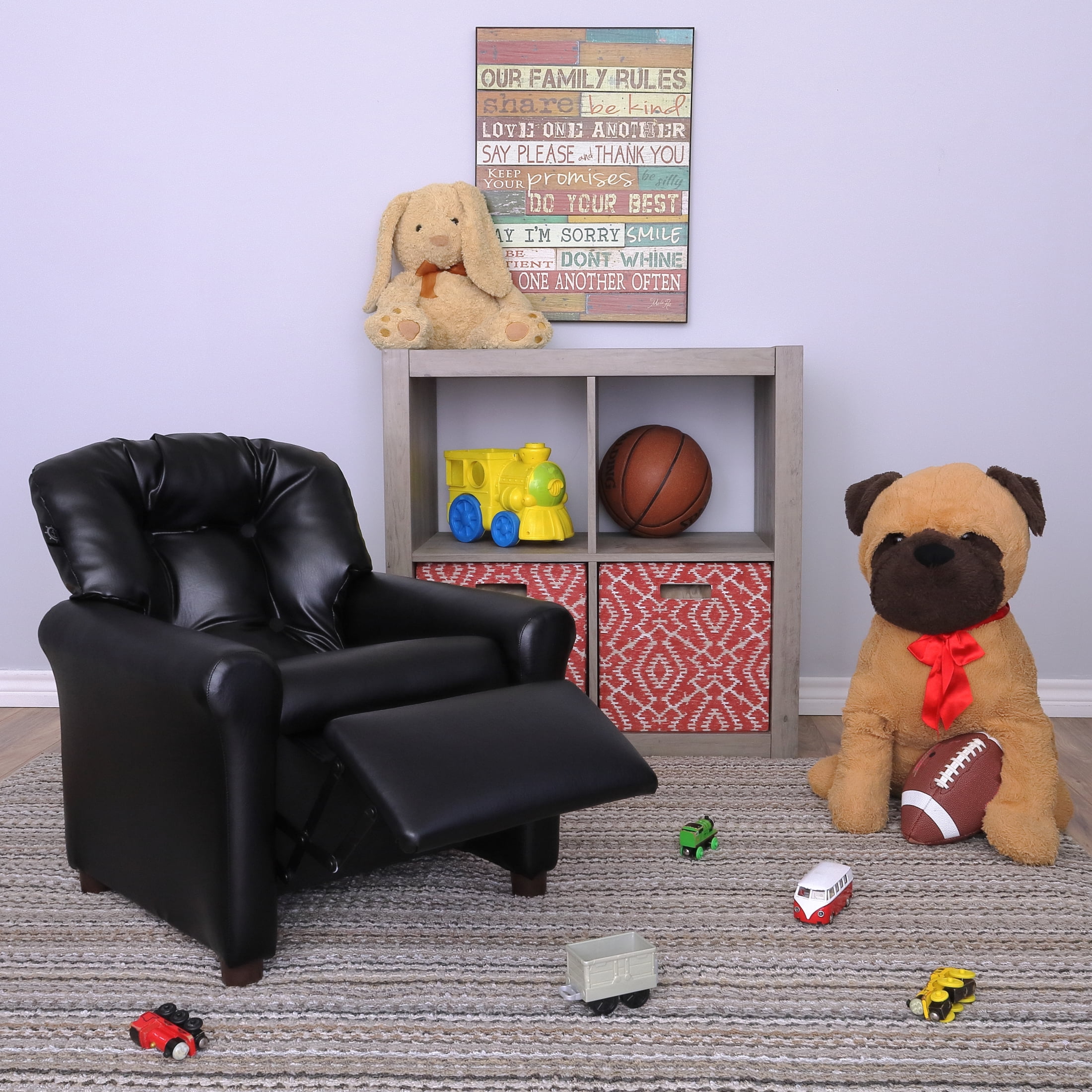 The Crew Furniture Traditional Kids Recliner Chair, Toddler Ages 1-5 Years, PU Faux Leather Black