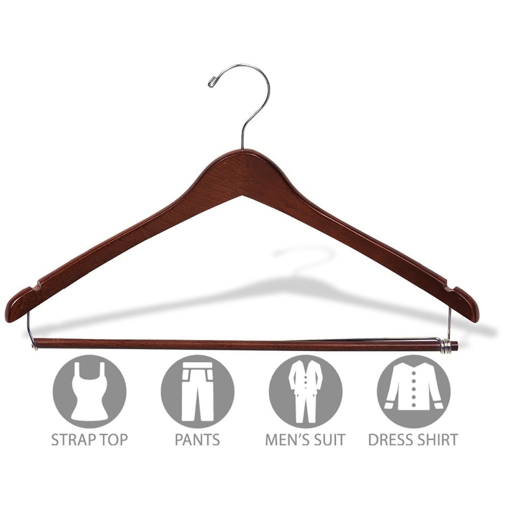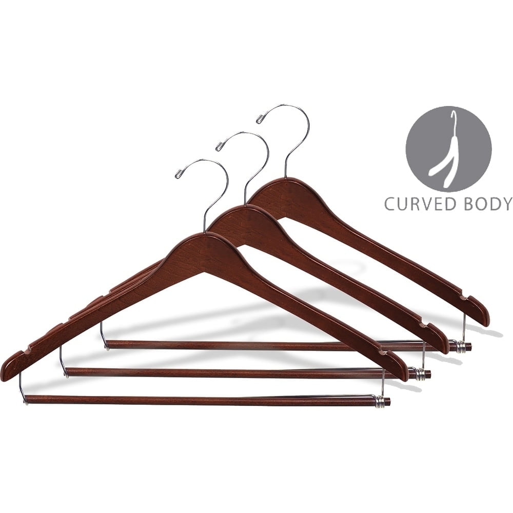 The Great American Hanger Company Curved Wooden Suit Hanger with Walnut Finish & Locking Pant Bar, 1/2 Inch Thick Hangers with Polished Chrome Swivel