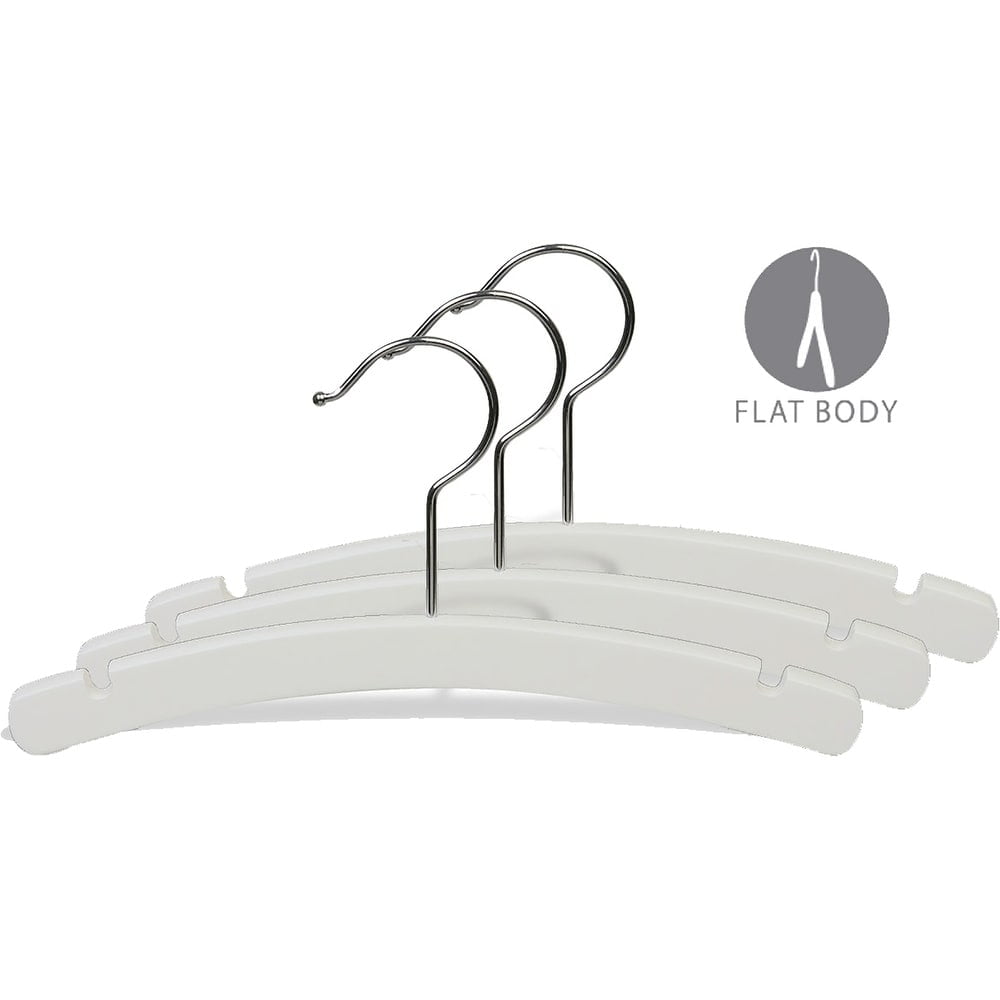 Keep your child’s closet neat and tidy with these wood hangers. These hangers are flat to save space in your child’s closet, and each hanger features notches so clothing with straps doesn’t fall off. The rounded edges keep tiny clothing from developing shoulder puckers, and the swivel hook makes it easy to hang each item.
