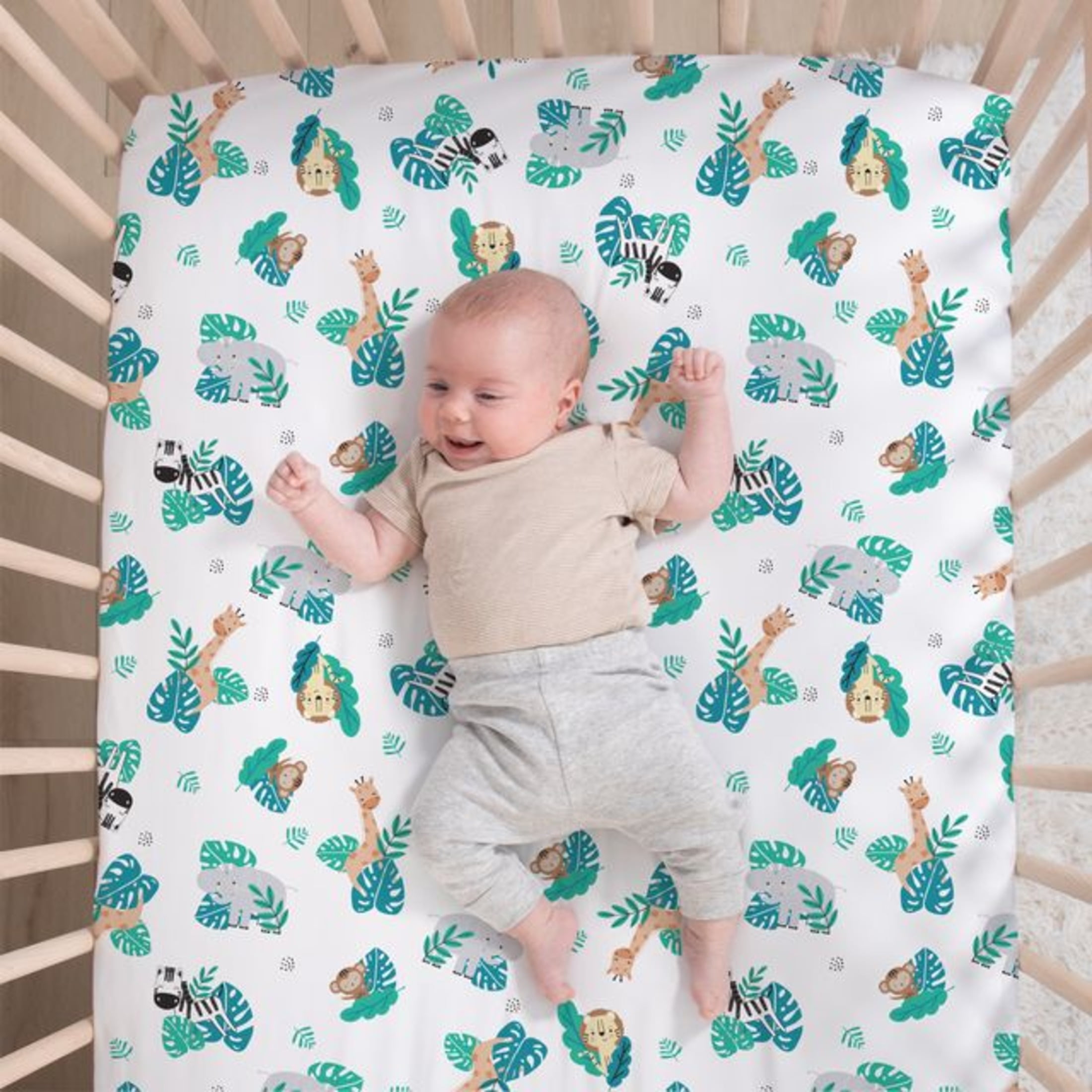 The Peanutshell Green and Grey Safari Adventures Crib Bedding Set for Baby Boys or Baby Girls, 3 Piece Nursery Set