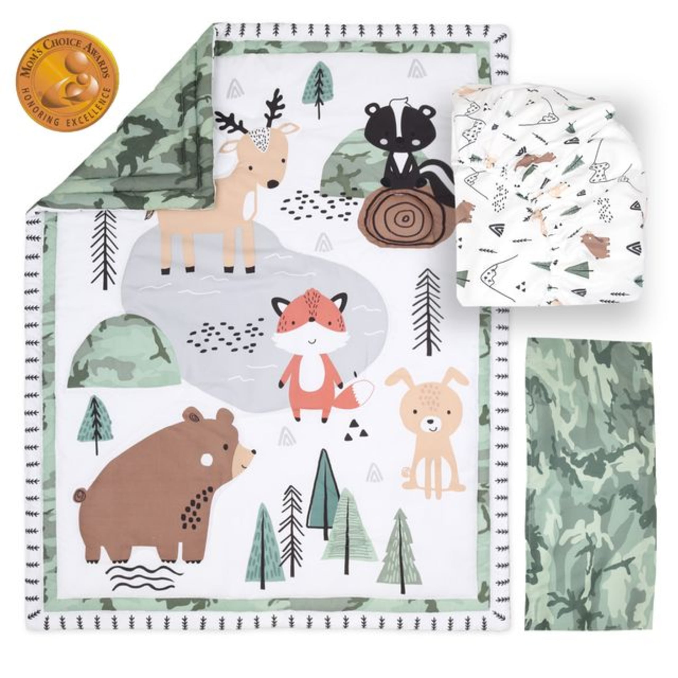 The Peanutshell Woodland Camo Crib Bedding Set for Baby Boys, 3 Piece Nursery Bed Set, Crib Comforter, Fitted Sheet, Crib Skirt