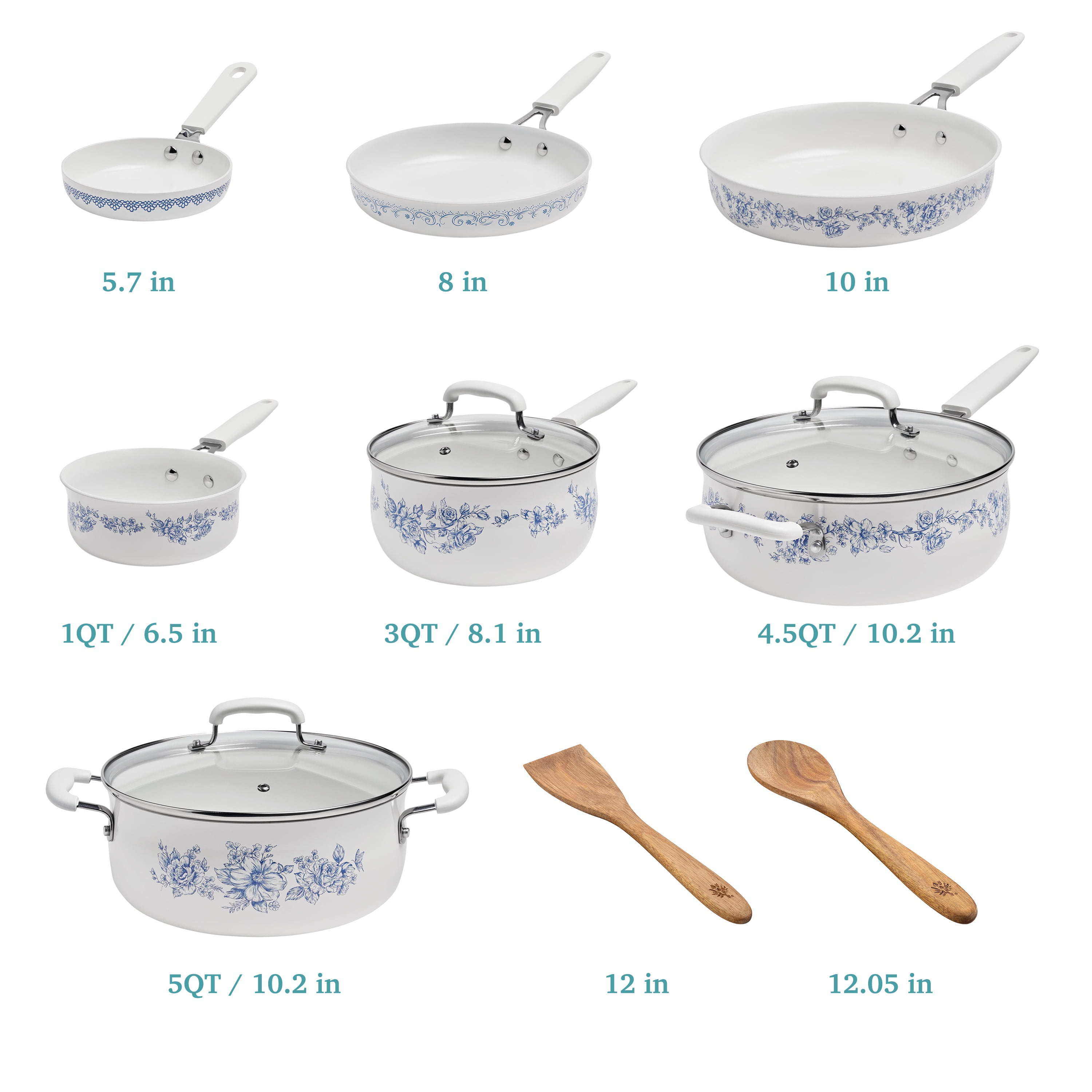 The Pioneer Woman 12-Piece Classic Ceramic Cookware Set, Agatha Blue