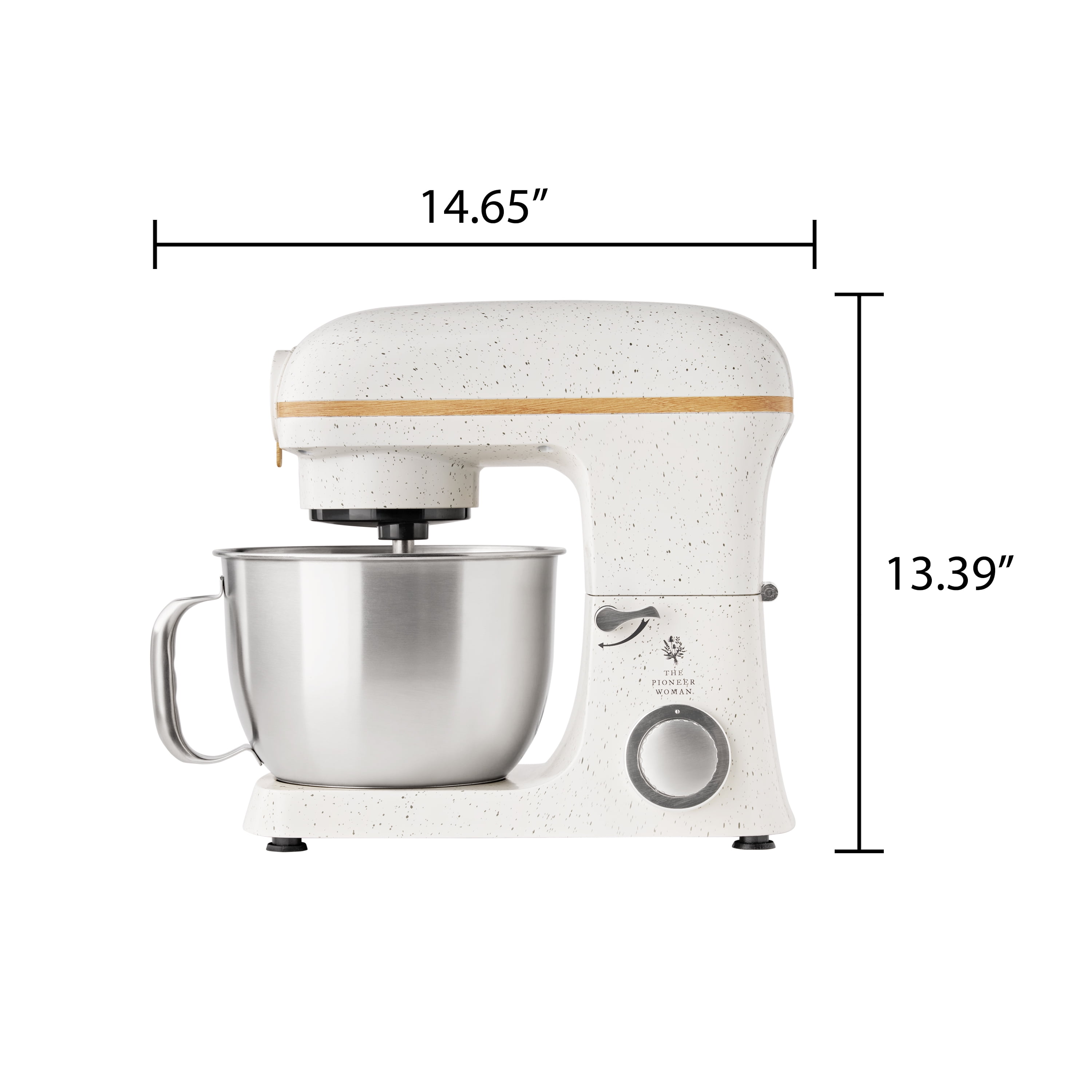 The Pioneer Woman 5 Quart 600W 6-Speed Professional Stand Mixer with Beater, Dough Hook and Whisk-Linen Speckle