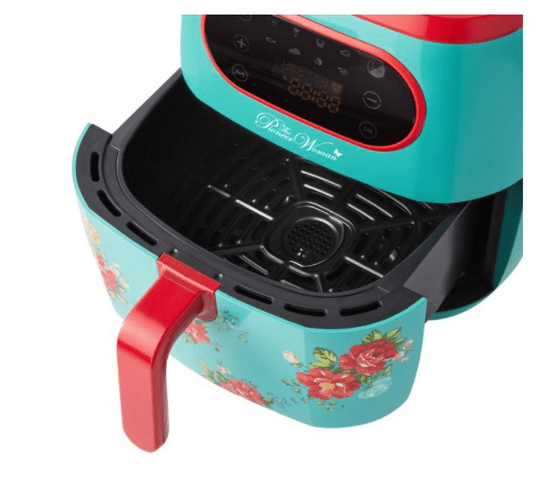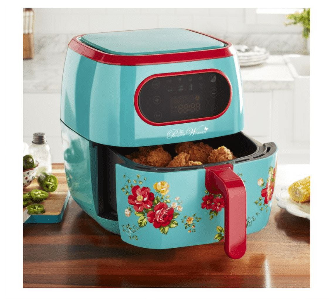 Create hot, crispy, and delicious fried foods in mere minutes with The Pioneer Woman Vintage Floral 6. 3-Quart Air Fryer – PW6136170192004 . Gone are the days of staying on standby as your oven preheats. With The Pioneer Woman Vintage Floral Air Fryer, all you need to do is turn it on, set your time and temperate, and you’re ready to cook! The air fryer’s 6. 3-quart basket can hold up to several servings of your favorite foods, and its grated bottom allows excess oil to drip off and away from your foods as they cook, which not only helps give them a crispier texture but also makes them a little healthier. Plus, with eight preset options for user-friendly operation and an icon indicator that reminds you to shake up your fries, you can enjoy a perfectly crisp, golden-brown bite from any fried food. Whether you’re cooking up golden croissants or rejuvenating some leftover fries, The Pioneer Woman Vintage Floral 6.3-Quart Air Fryer will handle the job. Meet Ree: Ree Drummond is a NY Times Best Selling Author, TV personality, social media phenom, and the woman behind the popular Pioneer Woman lifestyle blog that started it all. She’s also a lover of butter, basset hounds, Ethel Merman, her hunky, cowboy husband Ladd, and their four kids. Her casual country style and delicious recipes have made her a go-to for all things cooking and entertaining.