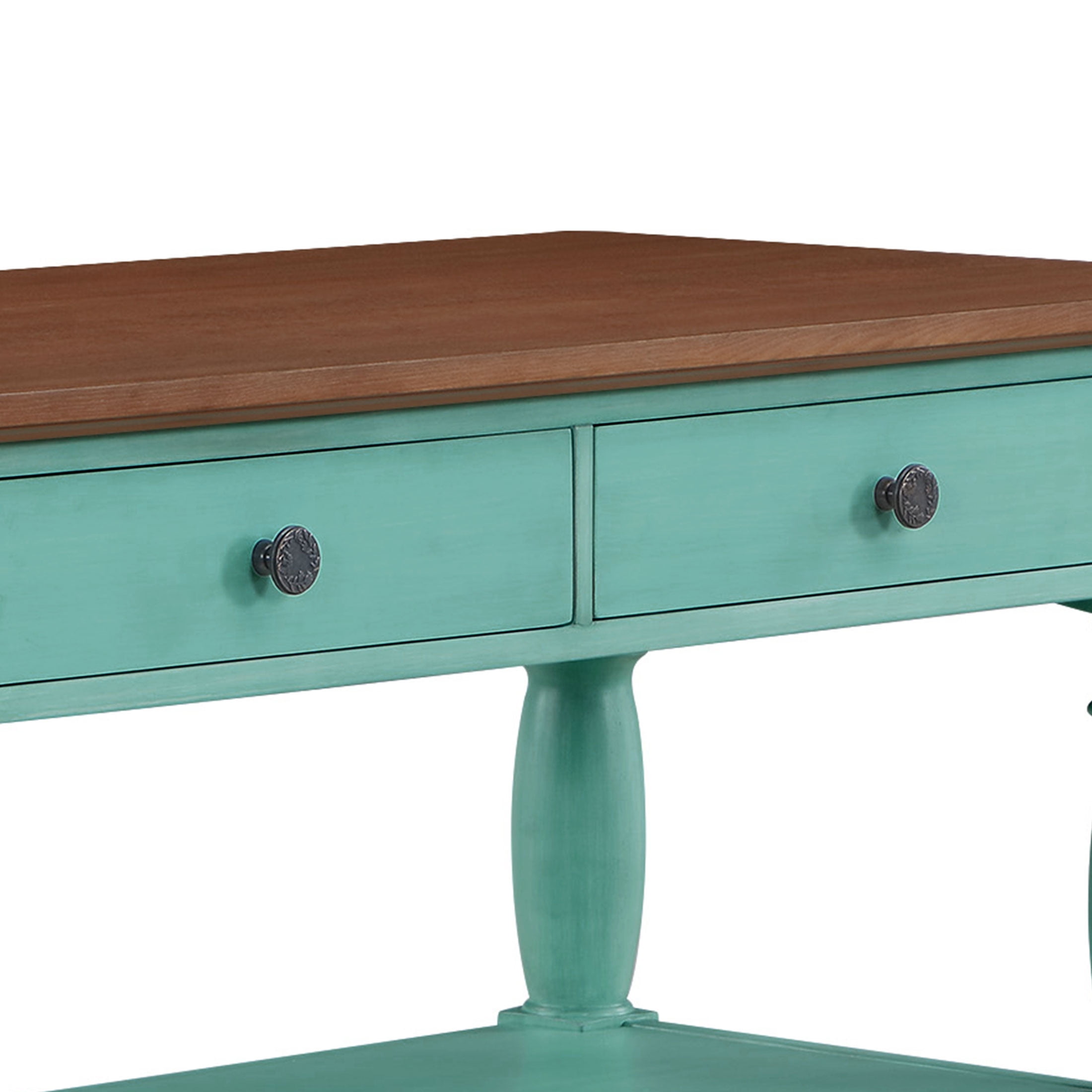 Bring the timeless charm of Ree’s ranch into your own home with The Pioneer Woman Teal Kitchen Island. This multifunctional island features two bottom shelves that you can use for storage or display. It also has two storage drawers with full-extension, ball-bearing glides. It will make a wonderful addition to your kitchen or any room in your home. Mix and match this island with other furniture from The Pioneer Woman Collection. Add vintage-inspired style to your home with The Pioneer Woman Teal Kitchen Island. Meet Ree: Ree Drummond is a NY Times Best Selling Author, TV personality, social media phenom, and the woman behind the popular Pioneer Woman lifestyle blog that started it all. She’s also a lover of butter, basset hounds, Ethel Merman, her hunky, cowboy husband Ladd, and their four kids. Her casual country style and delicious recipes have made her a go-to for all things cooking and entertaining.
