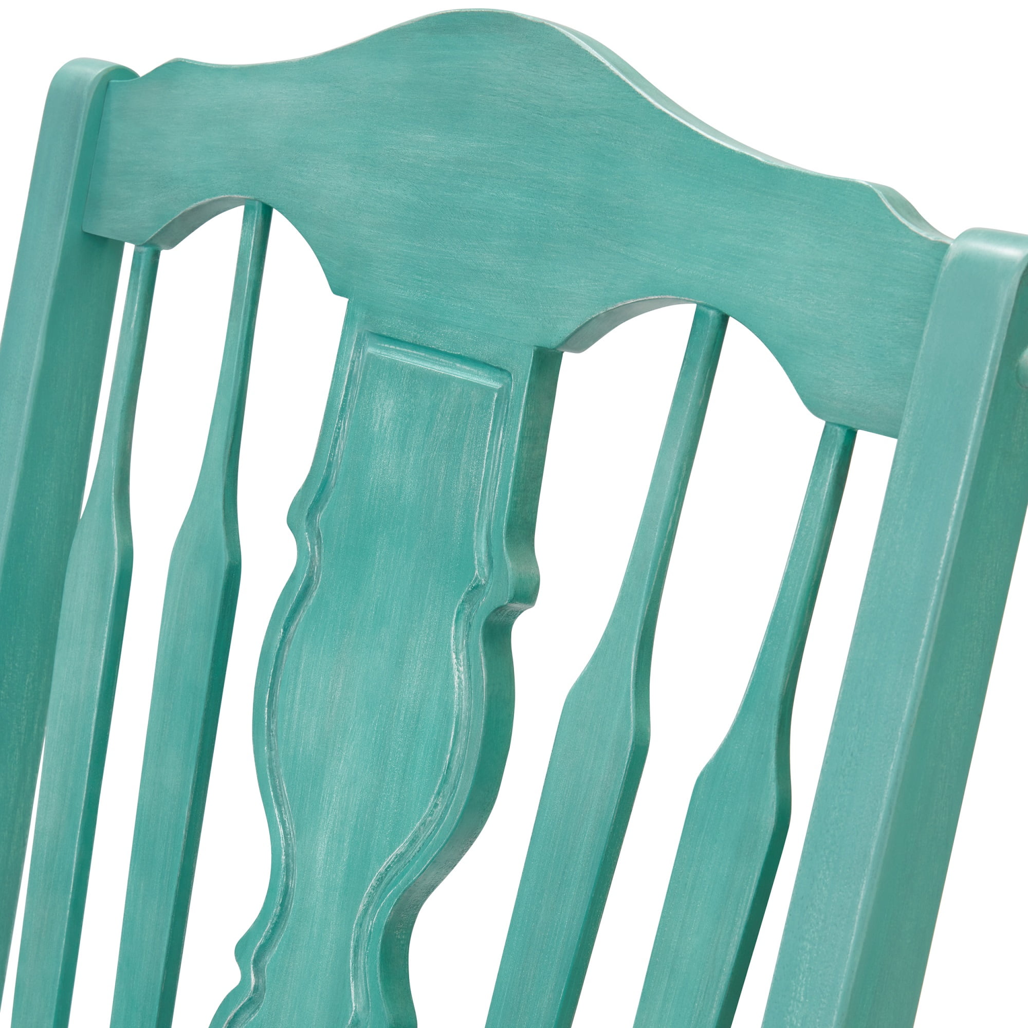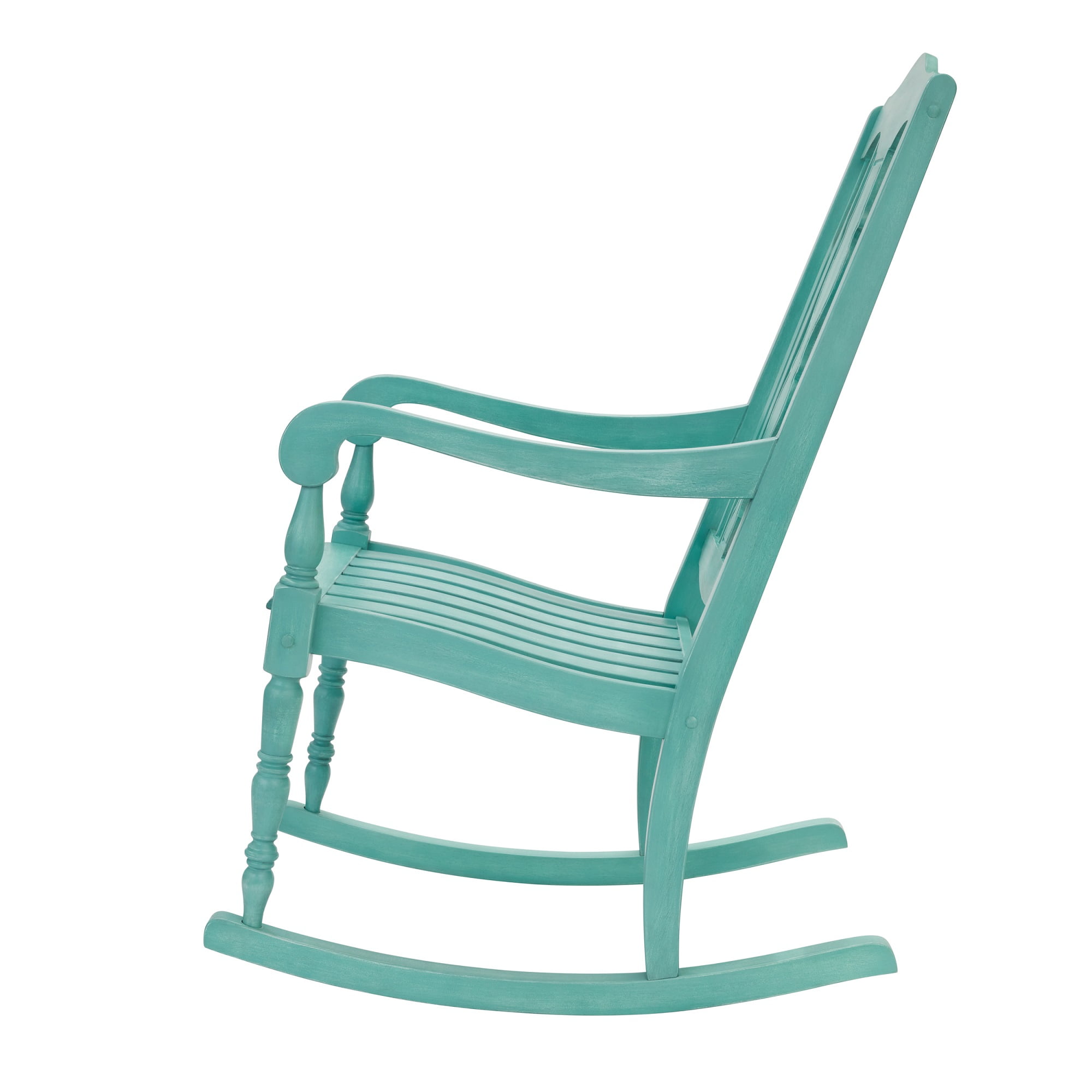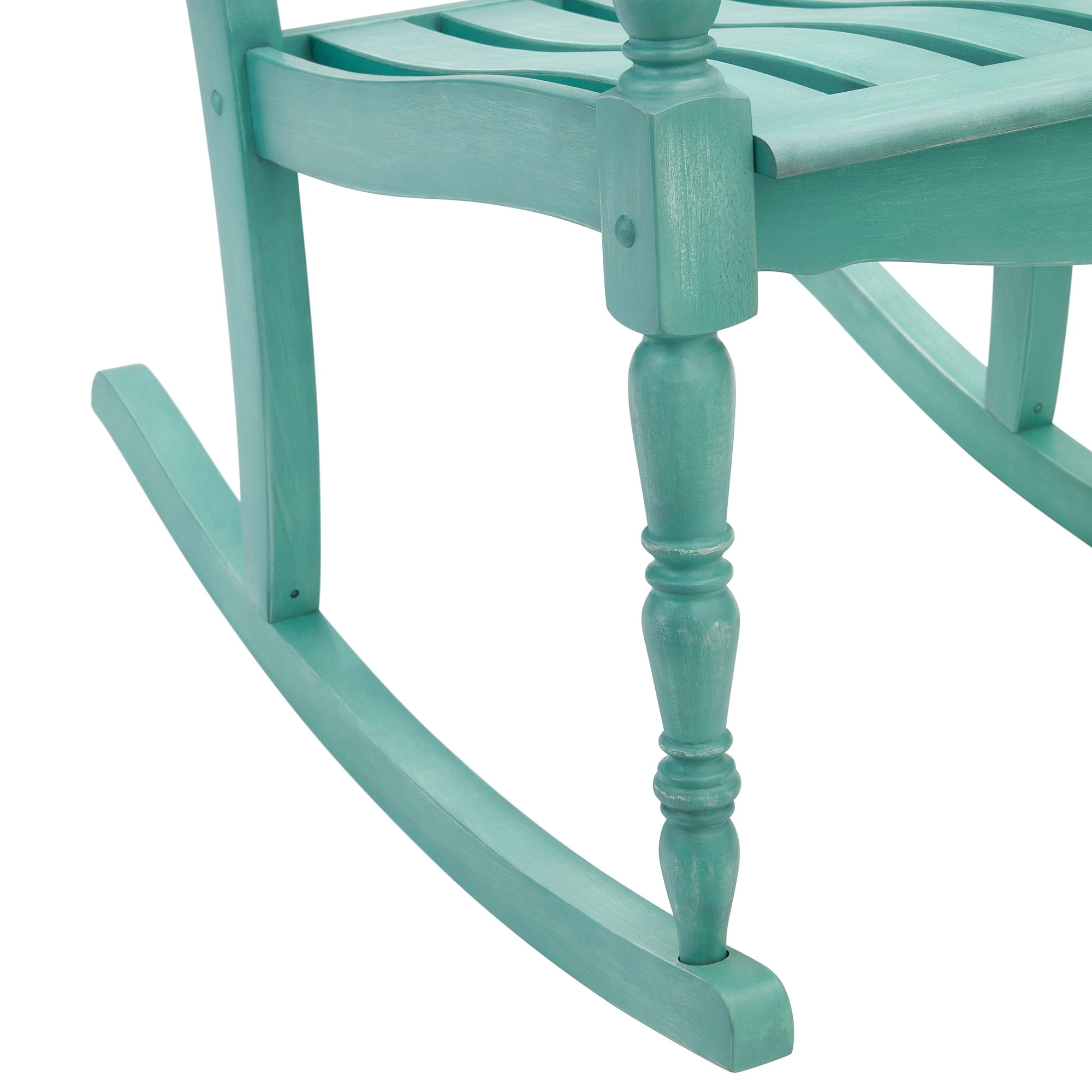 The Pioneer Woman Gemma Rocking Chair, Teal Delicately crafted details and graceful curves create a distinctly feminine look, making it a delightful addition to any setting Adorned in a captivating teal hue, this rocking chair exudes sophistication and style, adding a pop of color to your outdoor or indoor space Built to last, the rocking chair can support up to 250 lbs, ensuring comfort and stability for various body types Ergonomic seating feature invites you to indulge in moments of pure relaxation Smooth rocking motions gently cradle you into a blissful nap, enhancing your outdoor oasis experience Crafted from durable FSC certified Rubberwood, aligning with a commitment to sustainability